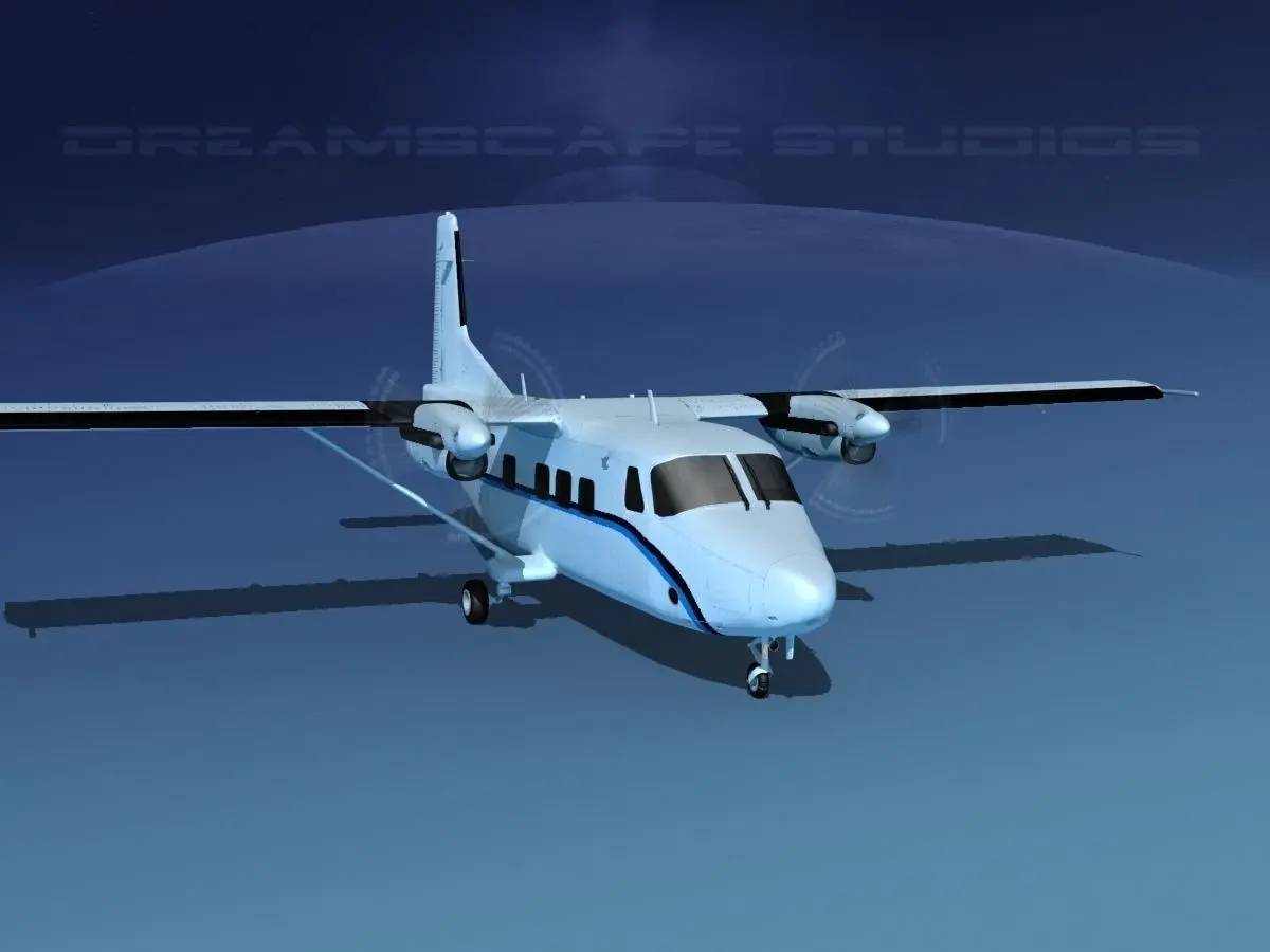 This model is originally built in max 13, is built very near to scale, within 3% of actual general dimensions. It includes a lot of exterior detail and general cabin modeling for camera views that show the cabin from outside of the aircraft. The model is fully textured including rivet patterns. Doors and baggage compartment doors are modeled separately. This model also has animateable flaps, landing gear doors, ailerons, elevators and rudder. Propellers are animated.