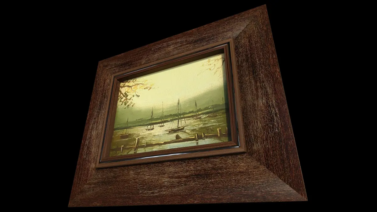 Old Harbor Oil Painting high quality photorealistic 3D model true to scale.