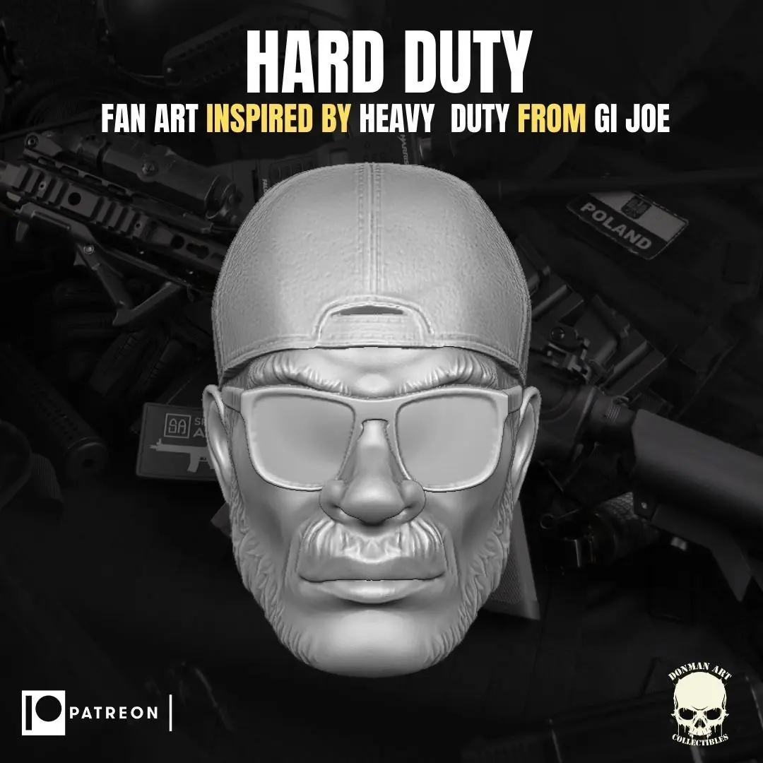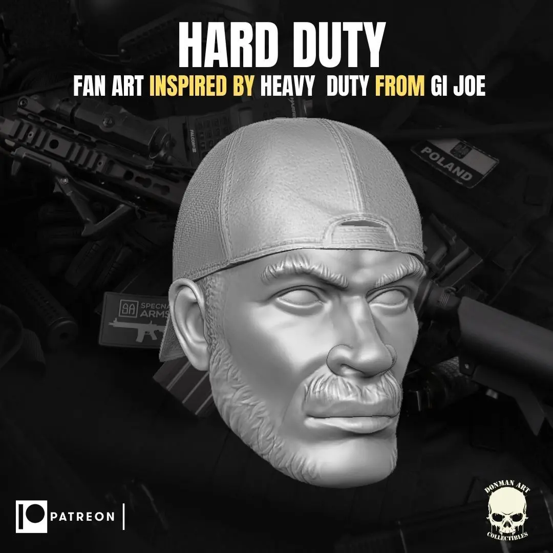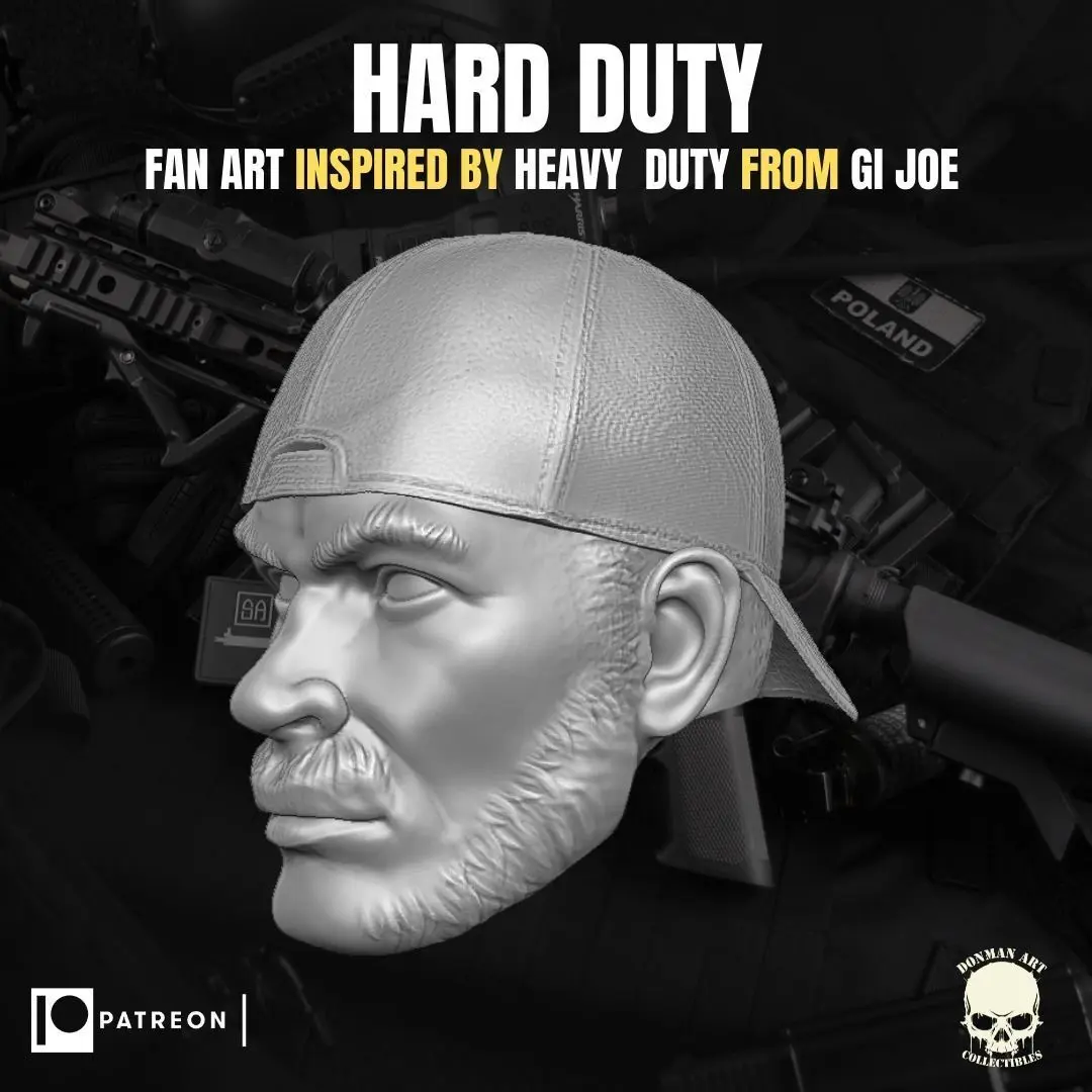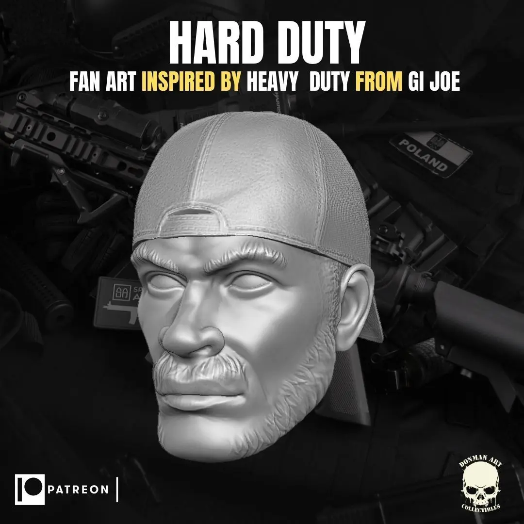 Hard Duty , Fan Art sculpt inspired by Heavy Duty from GI Joe This Head is for 1/12 action figures.You can scaled for other kind of figures:1/18 figures 60% 7 inch figures 110%