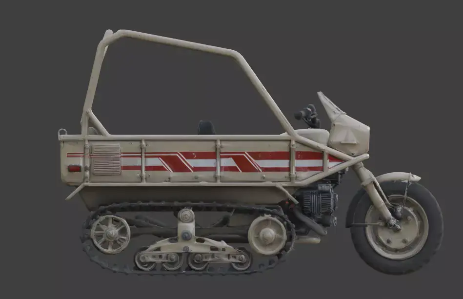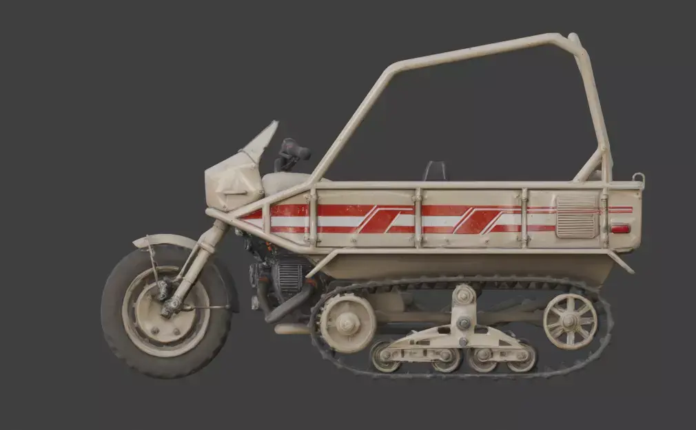 Tagshalf-track motorcycle sci-fi utility vehicle desert explorer tracked off-road hybrid bike tactical industrial apocalyptic rover rover exploration scout machine mechanical engine