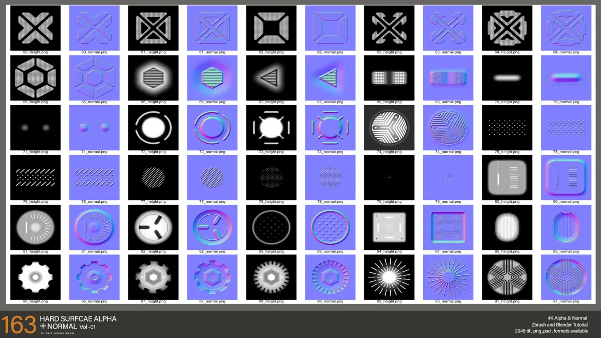Whenever you need to create a Hard surface model, there are a lot of small details that there is no point in creating these stuff. So you need a bag, full of small and medium details that can increase your speed and help you to create a better and amazing hard-surface model. we've gathered around 300 hard-surface alpha in different categories to help you meet your needs in this area.