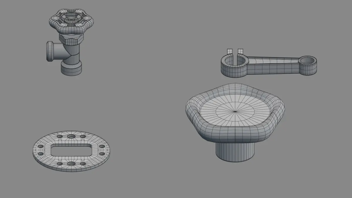 Hard Surface kitbash free sample (High poly + Low poly).