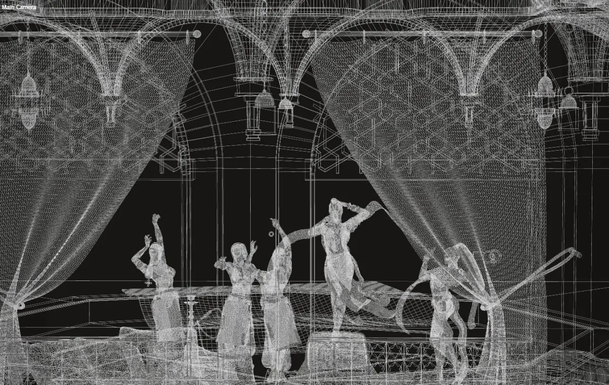 Full harem scene wth dancers inside ornate eastern buildingThe building can be rotated to give various viewpoints