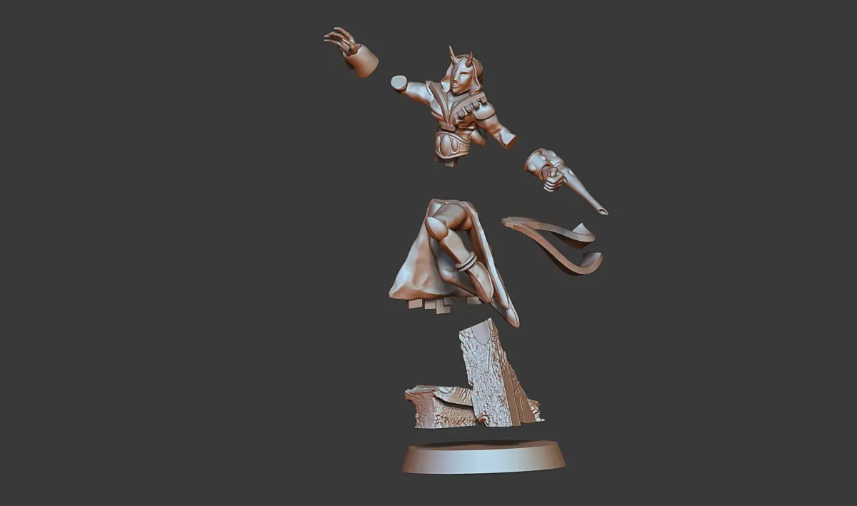 The hi res model (~ 0.5 million triangles) is made for a modular design with interchangeable hands/weapons. See my other designs for weapons add-ons and variationsThis Model is completely self sculpted and resized to 28mm Standard. This model will fit as a proxy or a Supplement for any miniature wargame.