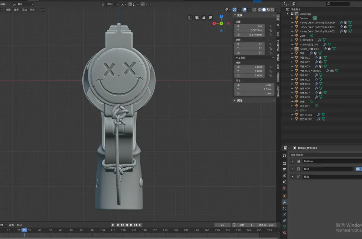 Use the software blender, save the version 3.12 at the end, keep most of the component subdivision modifier information, you can downgrade or simplify the model by yourself, the minimum subdivision model face number is 107595, see the screenshot, the rope details are realized by the replacement modifier, keep the modifier untouched Collapsed into a solid model (collapses itself) Displacement maps are provided. The cork uses the sculpting function of blender, uses the Decimate modifier to reduce the ploy acont and retain the modifier, which is convenient for exporting the model, (the Decimate modifier is turned off by default and needs to be opened manually). The model has no UV and no texture except the rope, and the simple material is colored.