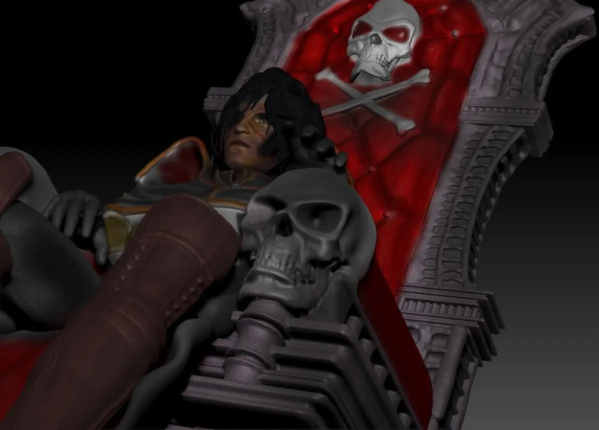 Harlock space pirate-inspired on the anime from 80. Here on his typical throne at her starship command center. On one of the best designs of ships, I never see. Will be soon on better quality too. A new version updated for all fans. and 2 more formats. Pirata Espacial Capitán Harlock (宇宙海賊キャプテンハーロック Uchu Kaizoku Kyaputen Haarokku?), también conocido como Capitán Harlock (España, parte de Centroamérica, Miami, Venezuela) y Capitán Raimar (Argentina, Ecuador, Chile, Colombia, Costa Rica, Panamá, Perú y Puerto Rico), es un manga escrito e ilustrado por Leiji Matsumoto. Fue serializado en Play Comic desde 1977 hasta 1979, sus capítulos fueron recopilados en cinco volúmenes tankōbon por Akita Shoten. La serie sigue al Capitán titular, un proscrito convertido en pirata espacial después de que se rebeló contra el Gobierno de la Tierra y la apatía general de la humanidad.