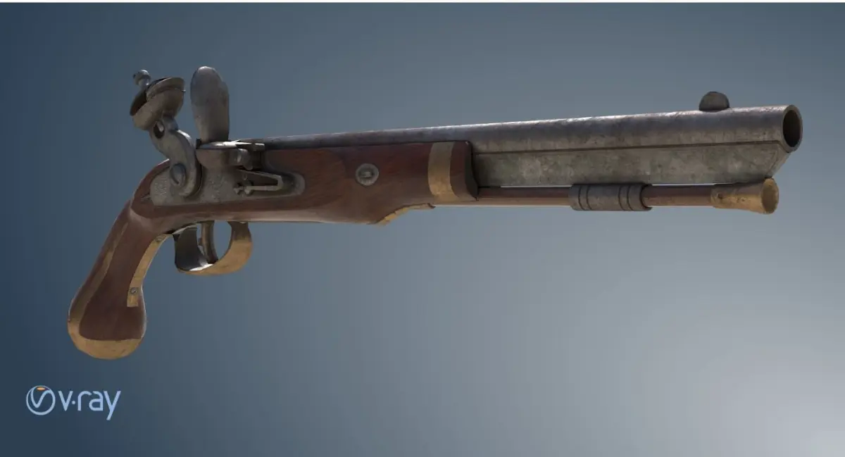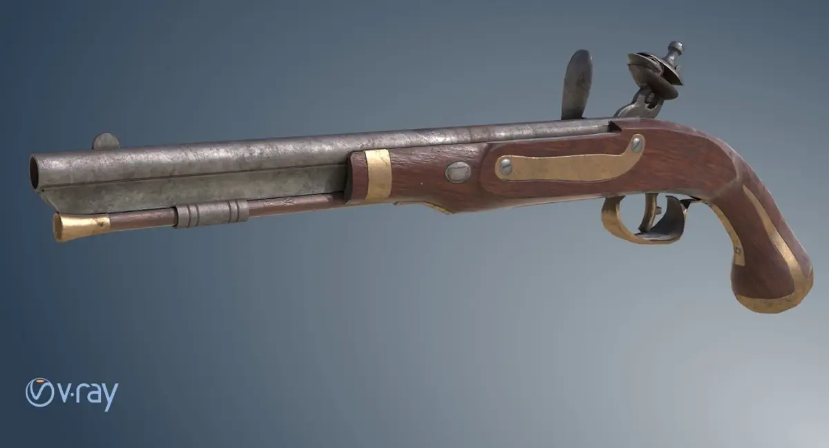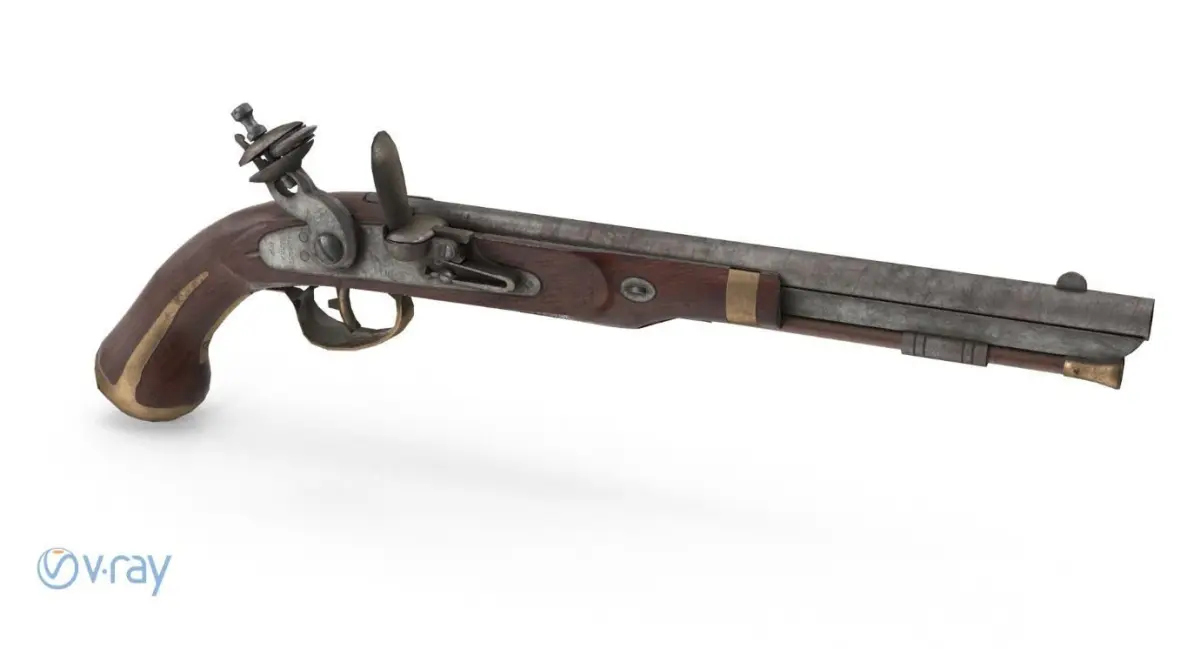 Harper's Ferry Flintlock Pistol - model and textures low-poly 3d model ready for Virtual Reality (VR), Augmented Reality (AR), games and other real-time apps.