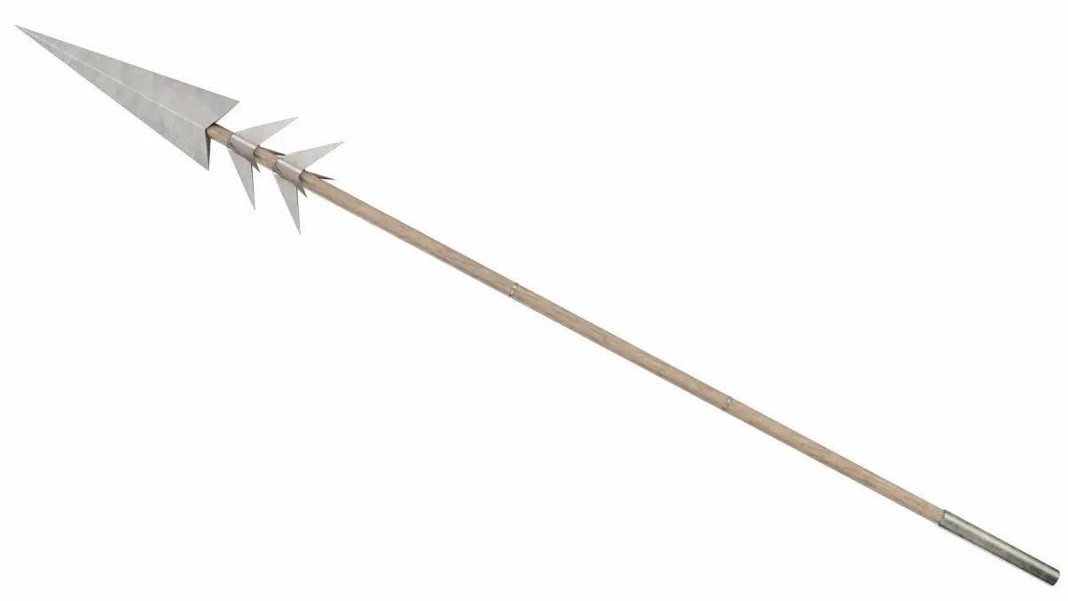 The pivot point of the object is in the center of the shaft of the harpoon.