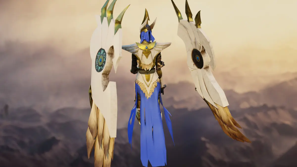 Model of a mystical creature similar to an angel or a harpy.gameready, lowpoly, 54500 polygonsIncludes:armor meshbody meshAttribute meshes (half pendants and cloth)texture maps for each mesh:base colornormalheightsroughness, metallicity, AO are placed in one file in different RGB channels (red - roughness, green - metallic, blue - AO)