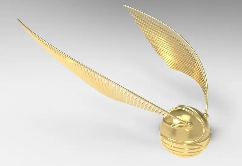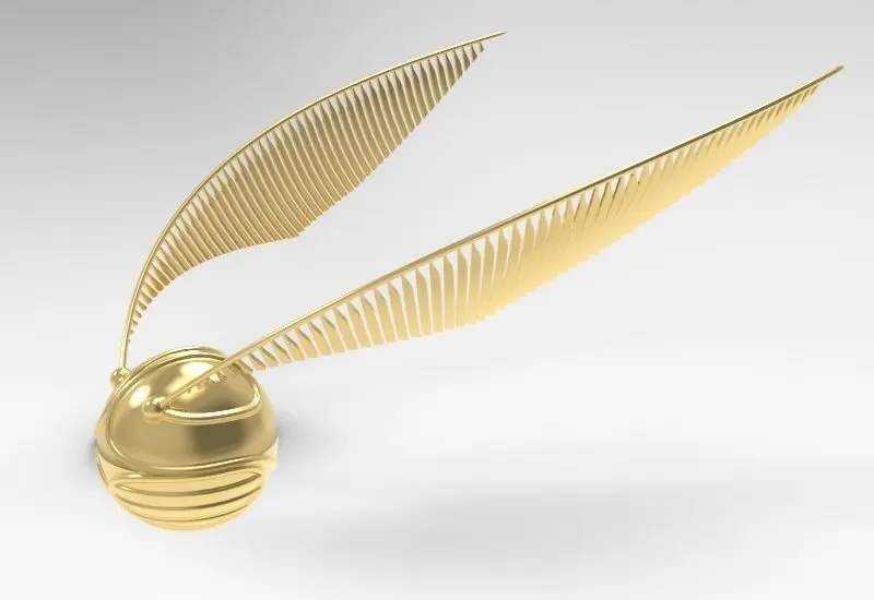 This 3D model was based of the legendary Golden Snitch from the Harry Potter franchise. This small golden ball is the approximate size of a walnut and is part of the Quidditch sport created by J.K. Rowling. The winged Snitch is enchanted to hover, dart, and fly around the pitch rapidly and indiscriminately, avoiding capture while remaining within the boundaries of the playing area. A Seeker catching the Snitch ends the game and scores the successful Seeker's team an additional 150 points.The Material chosen for developing this particular 3d model was brushed and polished gold. Also, the format of the files uploaded are: (.sldprt), (.stp), (.stl), (.igs), (.amf), (.obj), (.mtl) & (.pdf).
