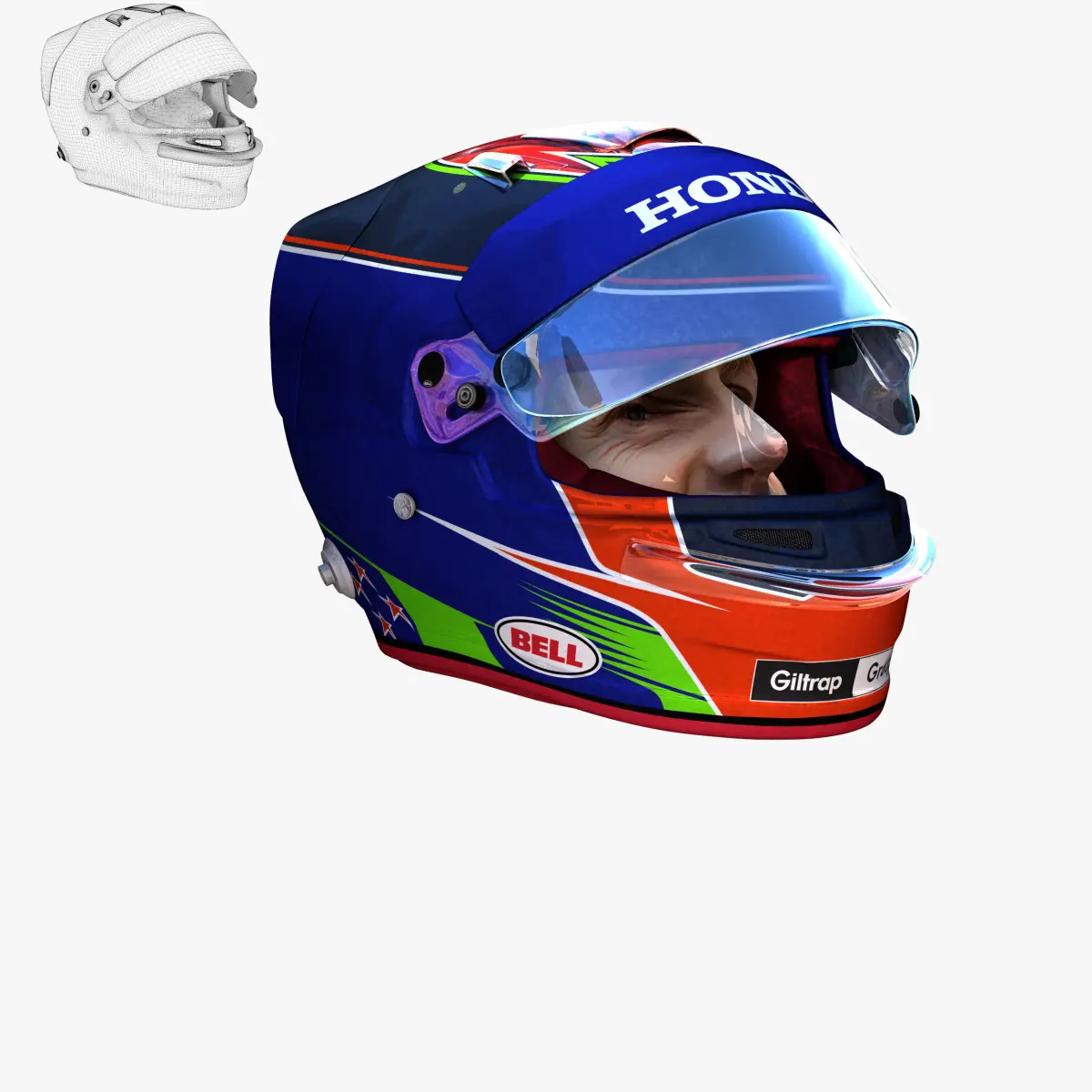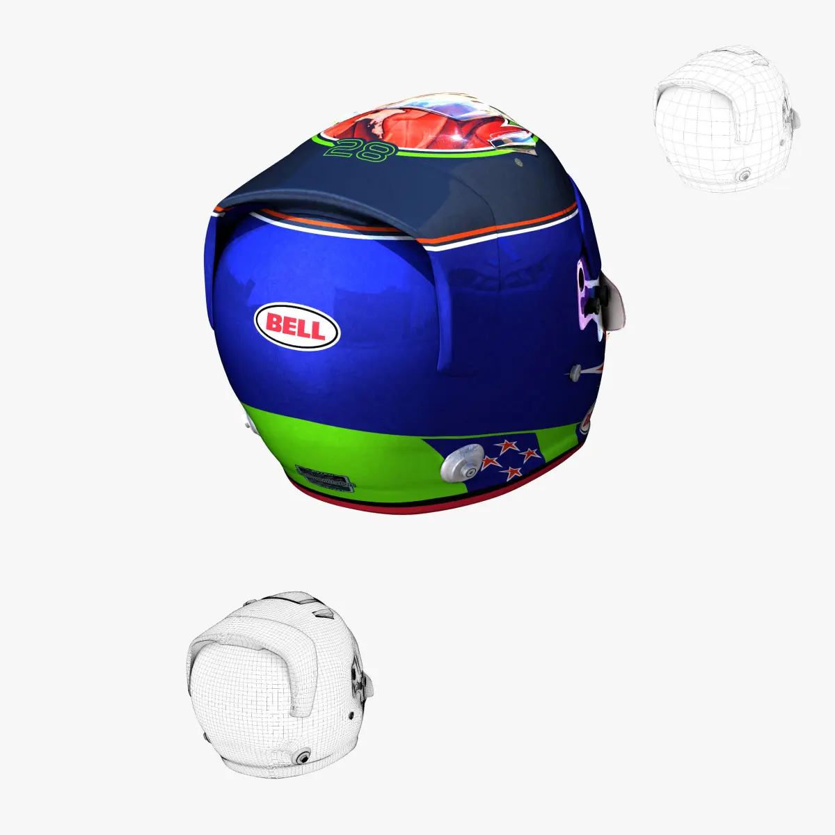 This is a 3D low poly model ,it was designed to provide a high definition in a low poly. Standard low-poly mesh with specific poly count. Its the most accurate and realistic of the market. This is a recreation of a F1 Helmet model,it can suffer modification over the season. The model is completely ready for use visualization in maya. For low poly model simply press 1 and for the high resolution press 3. In Cinema4d go to function menu and subdivide. In 3dmax meshsmooth In the low poly: Poly count : 5963Vertex count : 6314In the smooth version: Poly count : 23848Vertex count : 24538Textures included. Each texture is in jpg format and have a 4K texture resolution for high quality It has color texture Because of different Disk topology at different computers it might be required to change the textures path at the destination computer. The 3D model was created on real base. It's created accurately, in real units of measurement, qualitatively and maximally close to the original.Driver face texture isn't accurate , its only for preview visualize.