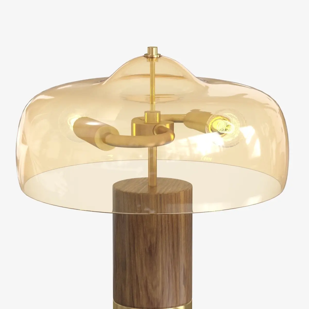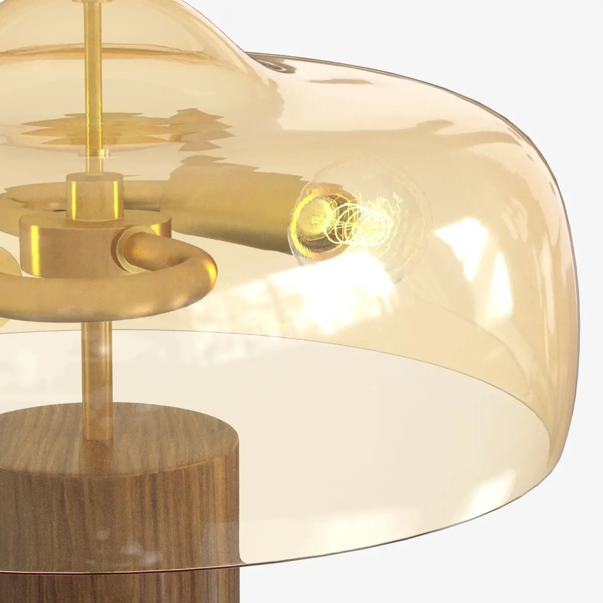 • '60s style table lamp with blown amber glass shade• Walnut wood base with brass collar• 2 x E14 globe bulbs, 40W max• Inspired by the lamps on the club floor at White City House
