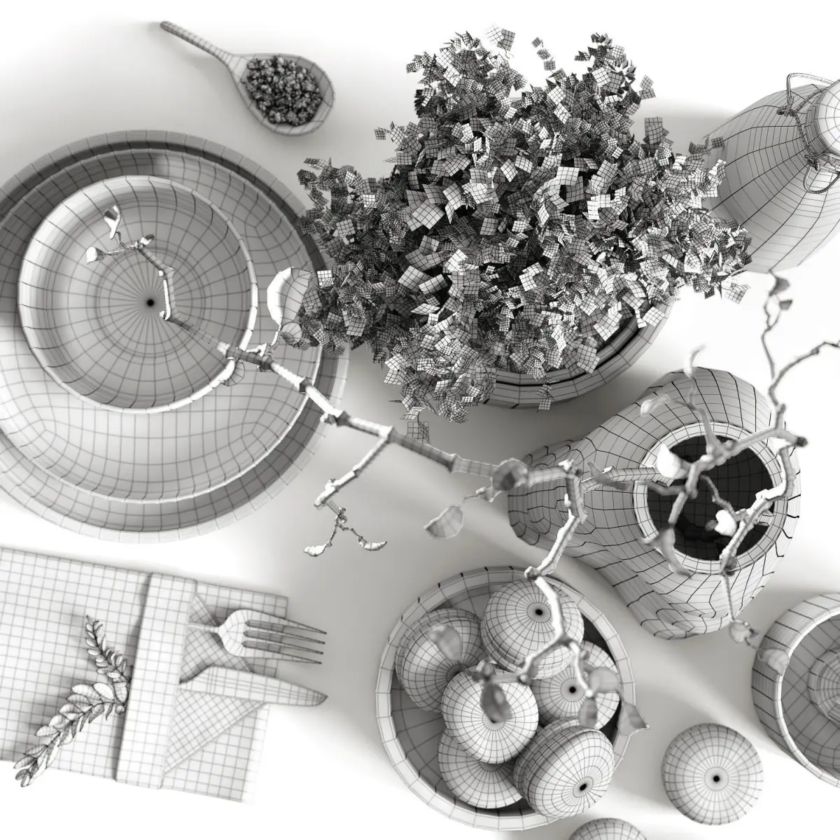 The turbosmooth modifier is applied to all models (display in the viewport - 0 iterations, 1 iteration on the render). If necessary, you can increase or decrease the number of smoothing iterations.