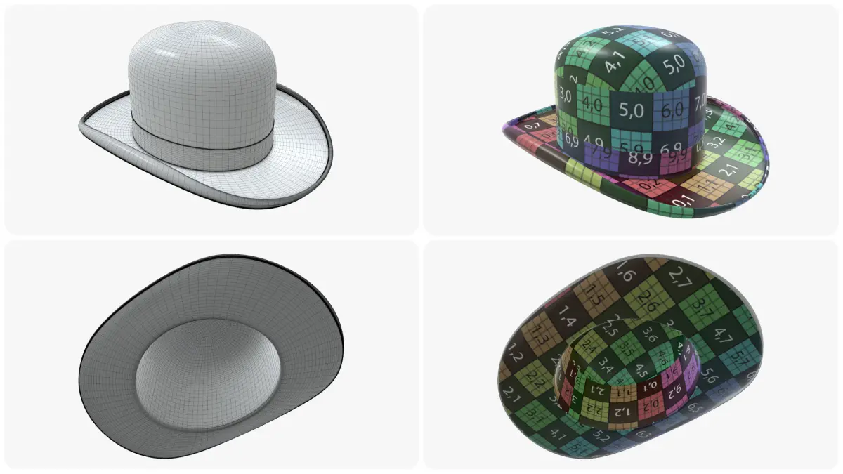 Hat set bowler men women floppy summer jester magician military 3D model