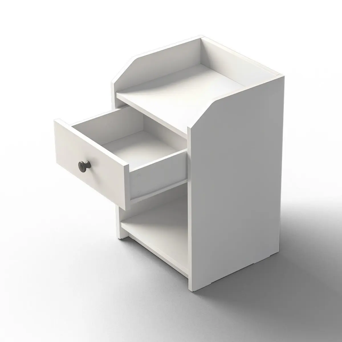 A detailed polygonal model of a bedside table from the Hauga family. Dimensions: 40x36 cm. Two color options included in the Blender file.
