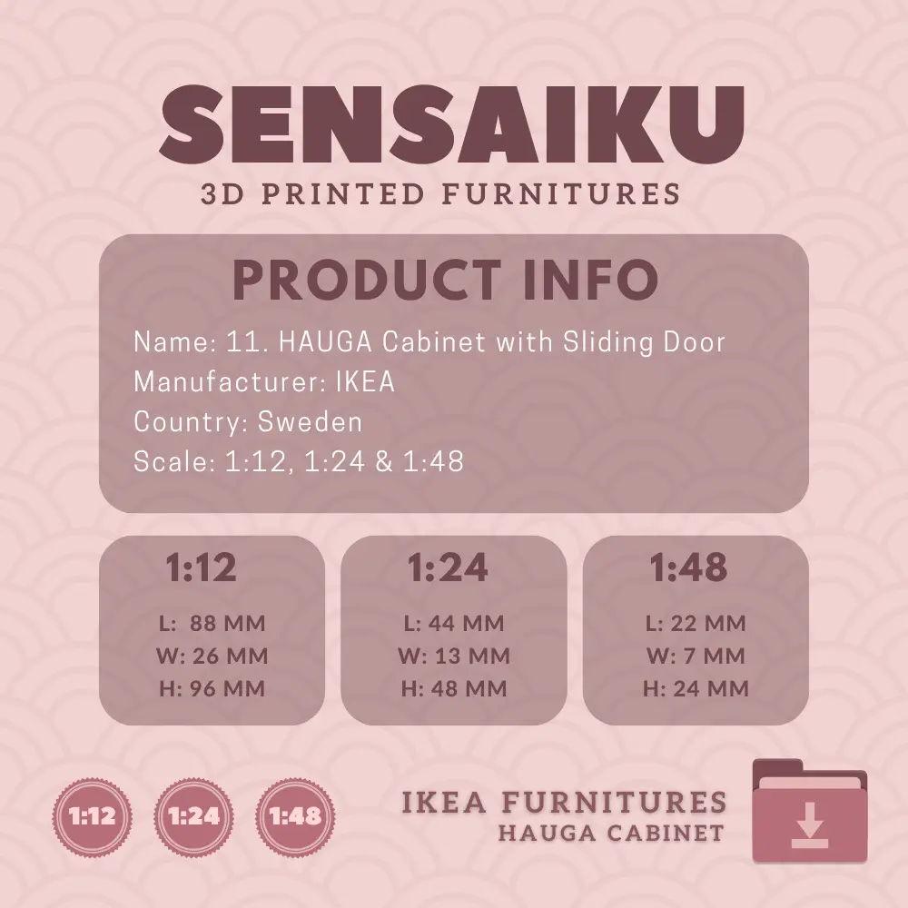 Name: 11. HAUGA Cabinet with Sliding DoorManufacturer - IKEARecommended Printer: Resin 3d PrinterSeries: Furniture Designers SeriesScale: 1:12, 1:24 & 1:48Builder: Sensaiku