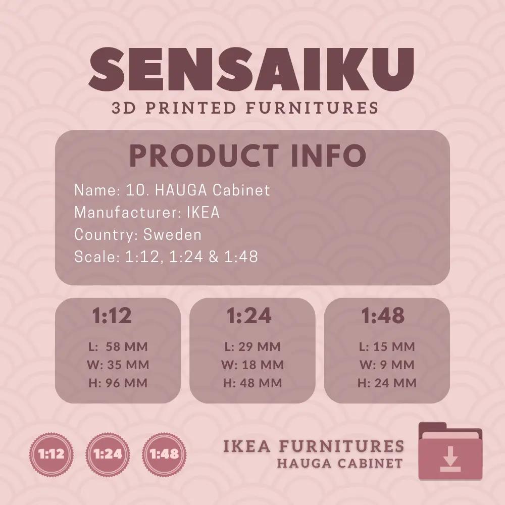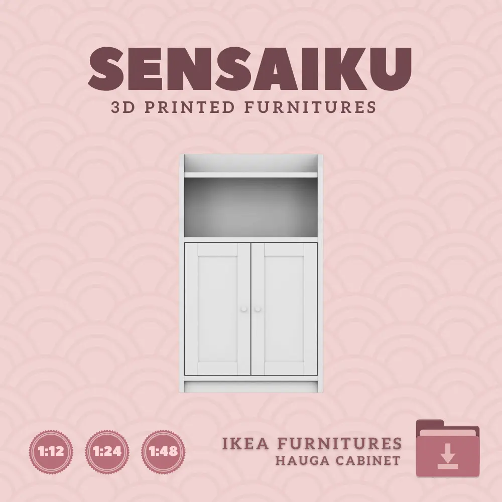 Name: 10. HAUGA Cabinet with Doors (Short)Manufacturer - IKEARecommended Printer: Resin 3d PrinterSeries: Furniture Designers SeriesScale: 1:12, 1:24 & 1:48Builder: Sensaiku