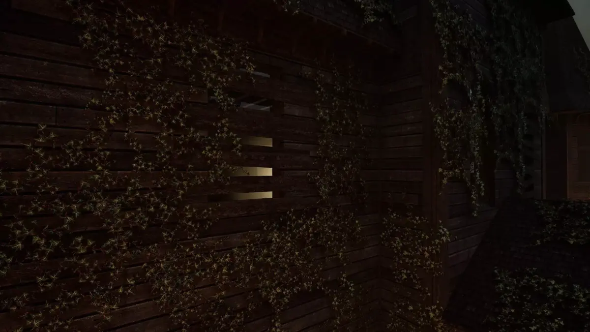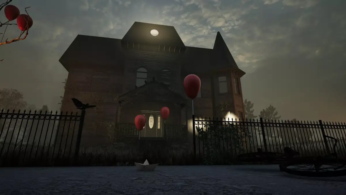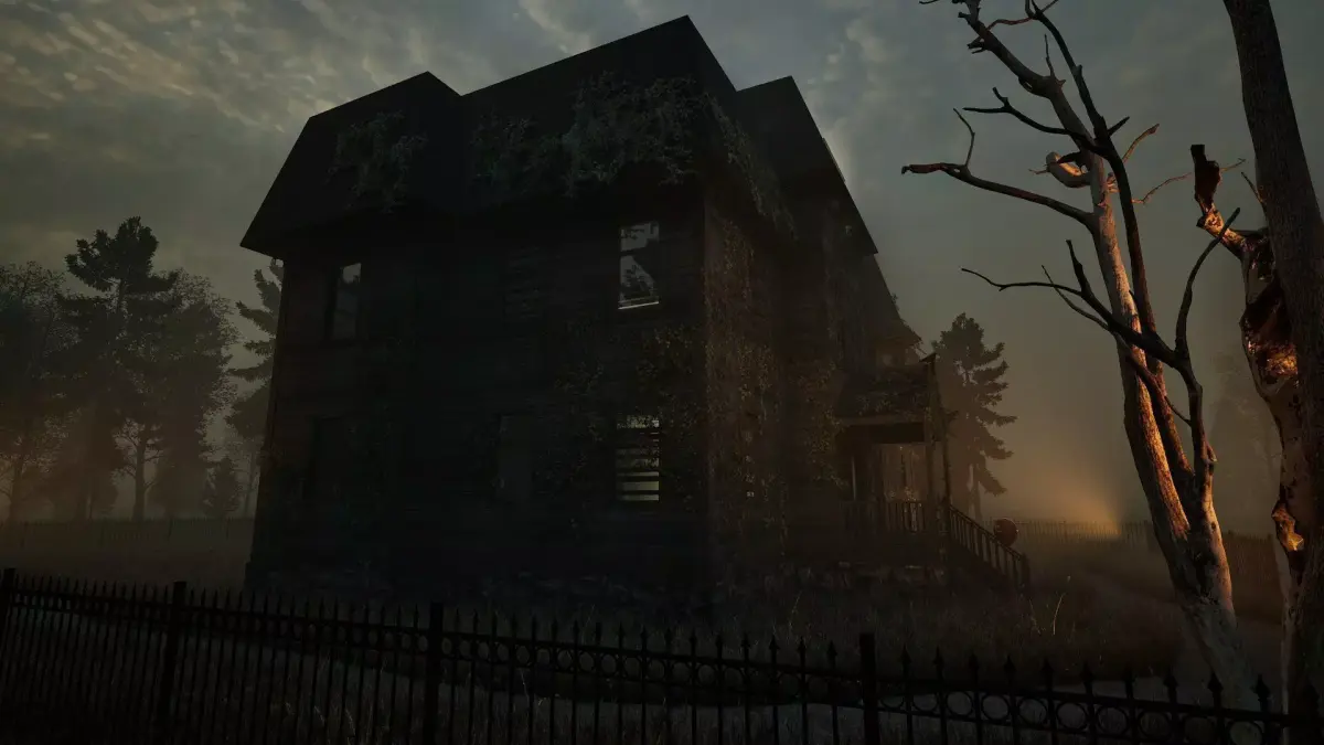 The house is designed with realistic proportions and textures, covered in old wood, ivy, and a gothic ambience. Surrounded by an iron fence and enhanced with chilling details, it creates the perfect scene for suspense, thrillers, or haunted environments.