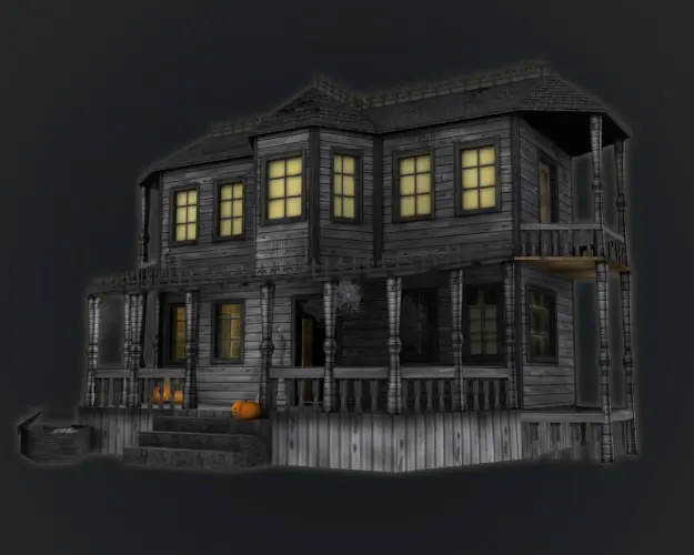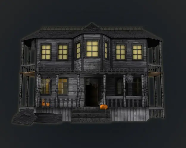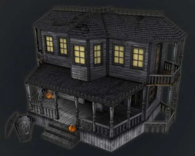 It is a haunted halloween house, with some pumpkins, cobwebs an a coffin. Great for your halloween