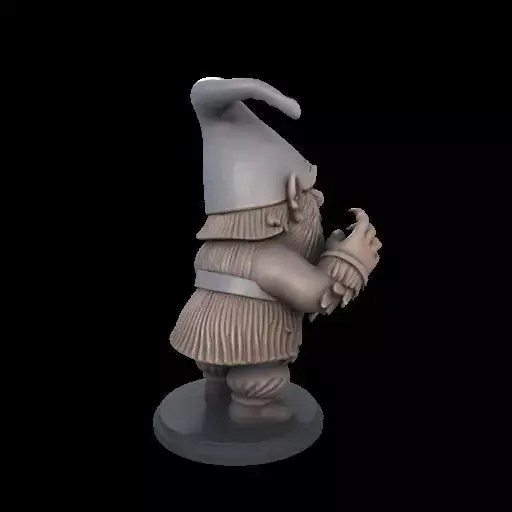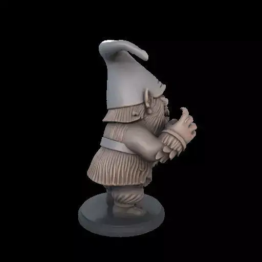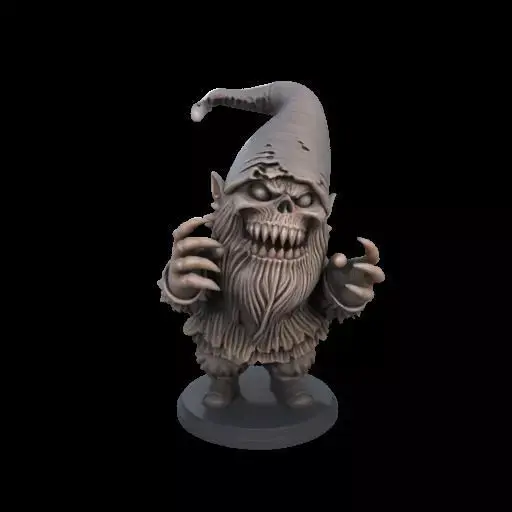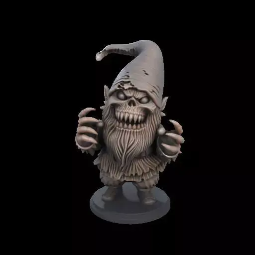 A terrifying 3D-printed gnome with a twisted, sinister grin and jagged teeth beneath a scraggly beard. Its hollow eyes, torn hat, and claw-like hands gripping a chipped axe give it a cursed, nightmarish presence. Stocky yet hunched, this creepy gnome blends eerie garden charm with pure horror. Perfect for Halloween decorations or as a scary collectible.