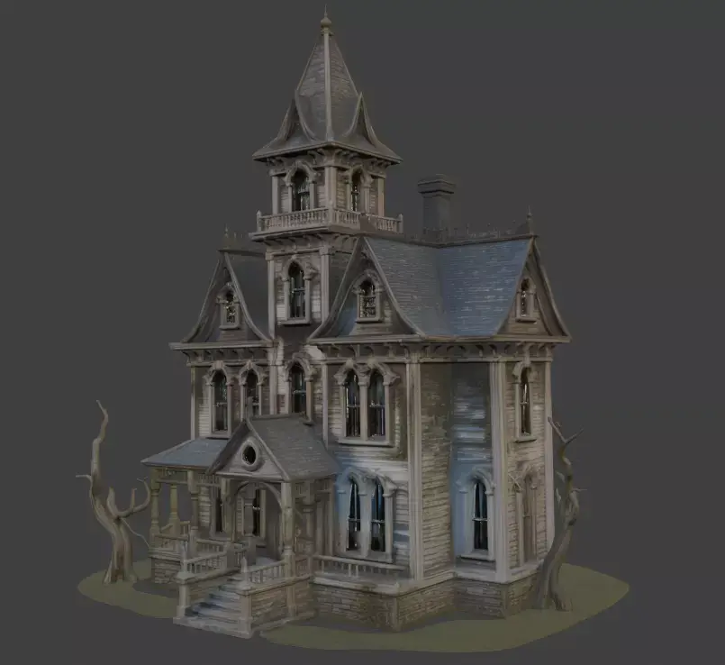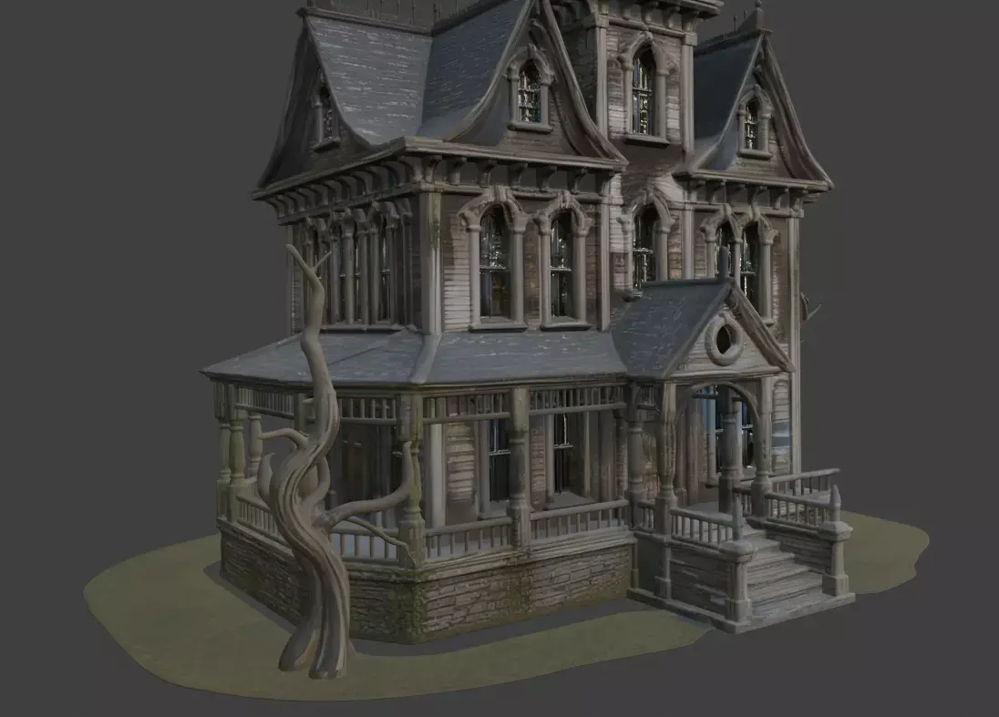 Step into the eerie charm of this highly detailed Haunted Victorian Mansion, perfect for horror games, Halloween scenes, cinematic renders, or architectural visualizations with a dark twist. This 3D model features a classic Victorian-style house with aged wooden siding, broken windows, boarded-up sections, creepy glowing green lights from within, a barren dead tree, intricate trim work, wrap-around porch, steep gabled roofs, and a towering turret.Fully PBR textured (4K textures included: Base Color, Normal, Roughness, Metallic, AO, Height). Clean quad topology, game-ready and optimized for real-time engines (Unreal Engine, Unity, Blender, etc.). Ideal for horror games, haunted house attractions, film projects, VR experiences, or any spooky environment.