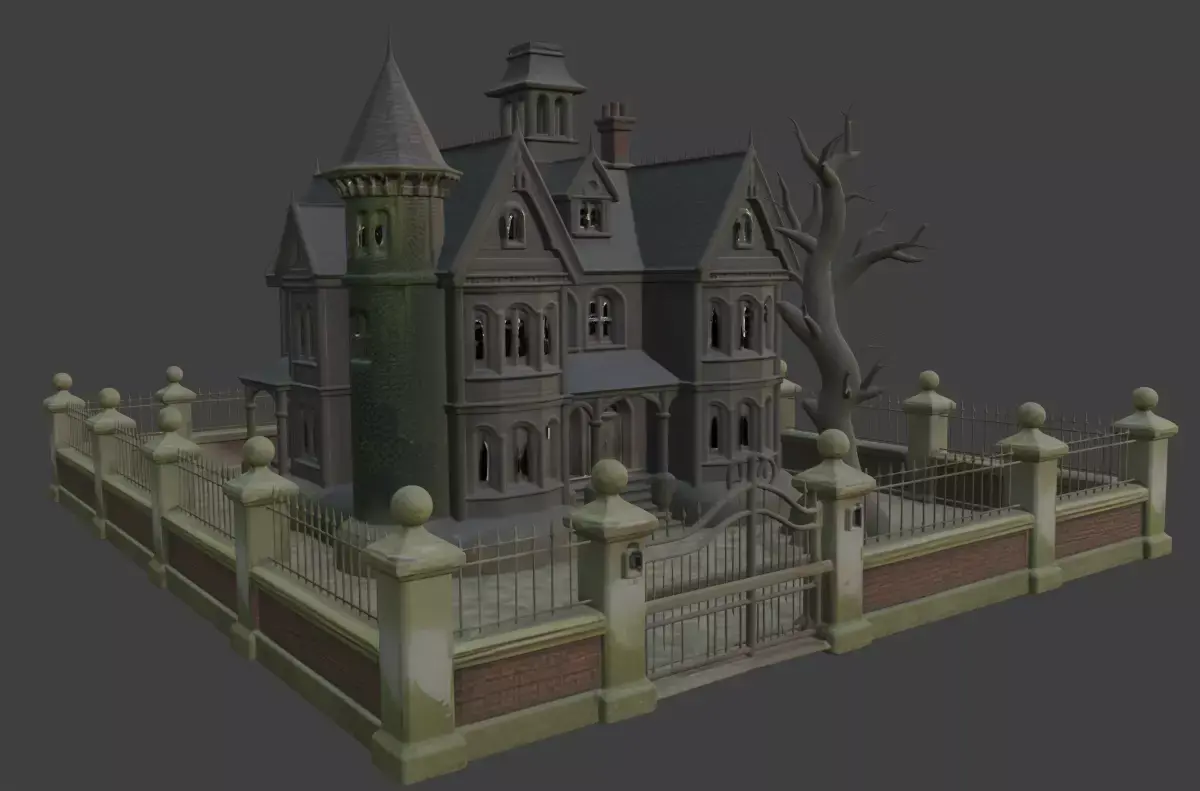 Step into the eerie charm of this highly detailed Haunted Victorian Mansion, perfect for horror games, Halloween scenes, cinematic renders, or architectural visualizations with a dark twist. This 3D model features a classic Victorian-style house with aged wooden siding, broken windows, boarded-up sections, creepy glowing green lights from within, a barren dead tree, intricate trim work, wrap-around porch, steep gabled roofs, and a towering turret.Fully PBR textured (4K textures included: Base Color, Normal, Roughness, Metallic, AO, Height). Clean quad topology, game-ready and optimized for real-time engines (Unreal Engine, Unity, Blender, etc.). Low-poly version also available upon request. Ideal for horror games, haunted house attractions, film projects, VR experiences, or any spooky environment.