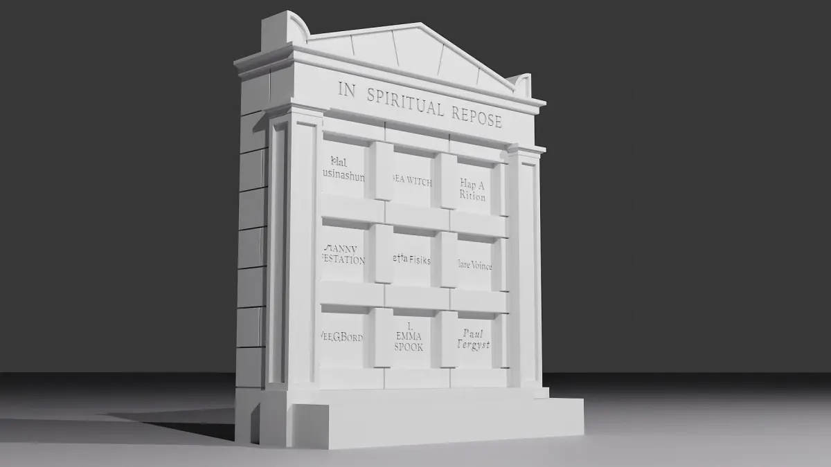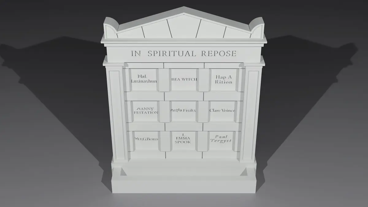 1. The first version closely matches the text seen on the actual crypt in the Haunted Mansion attraction. This model is provided in a size that is at scale with our 3D Printable Haunted Mansion model and a scaled-up version for ease of 3D printing.