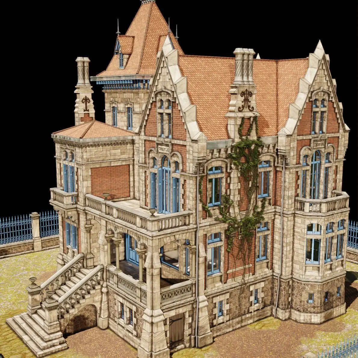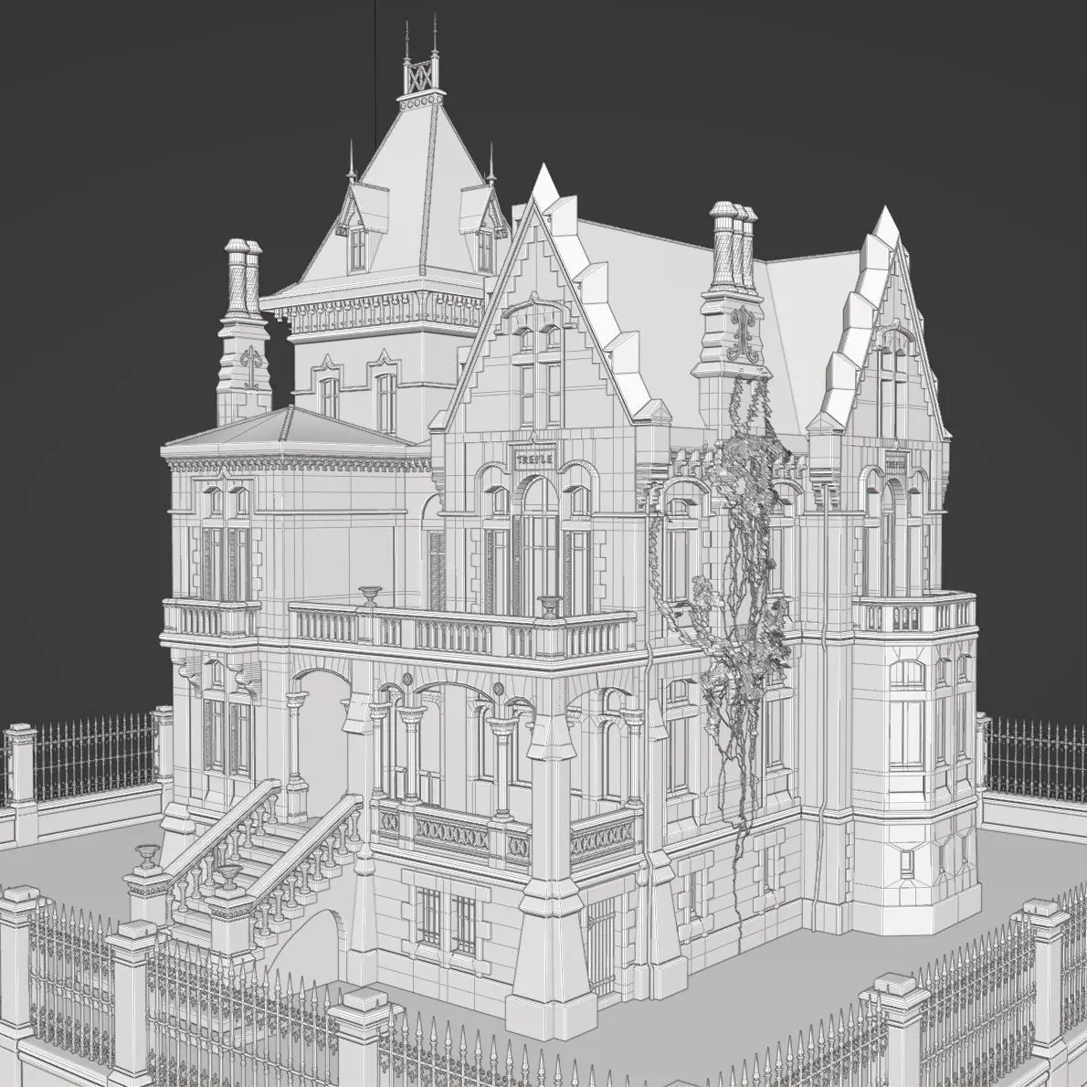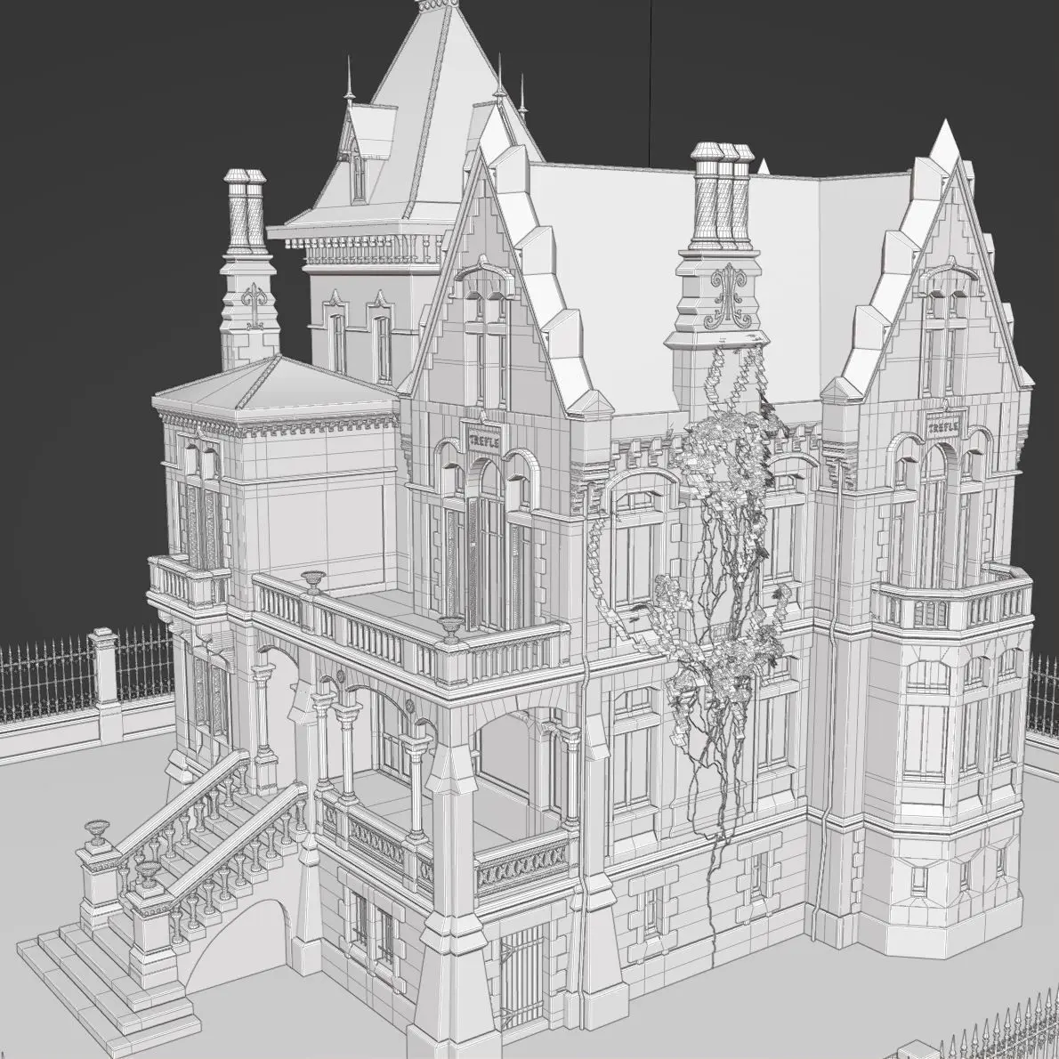 Haunted mansion 3D model inspired by a neo gothic villa in France.