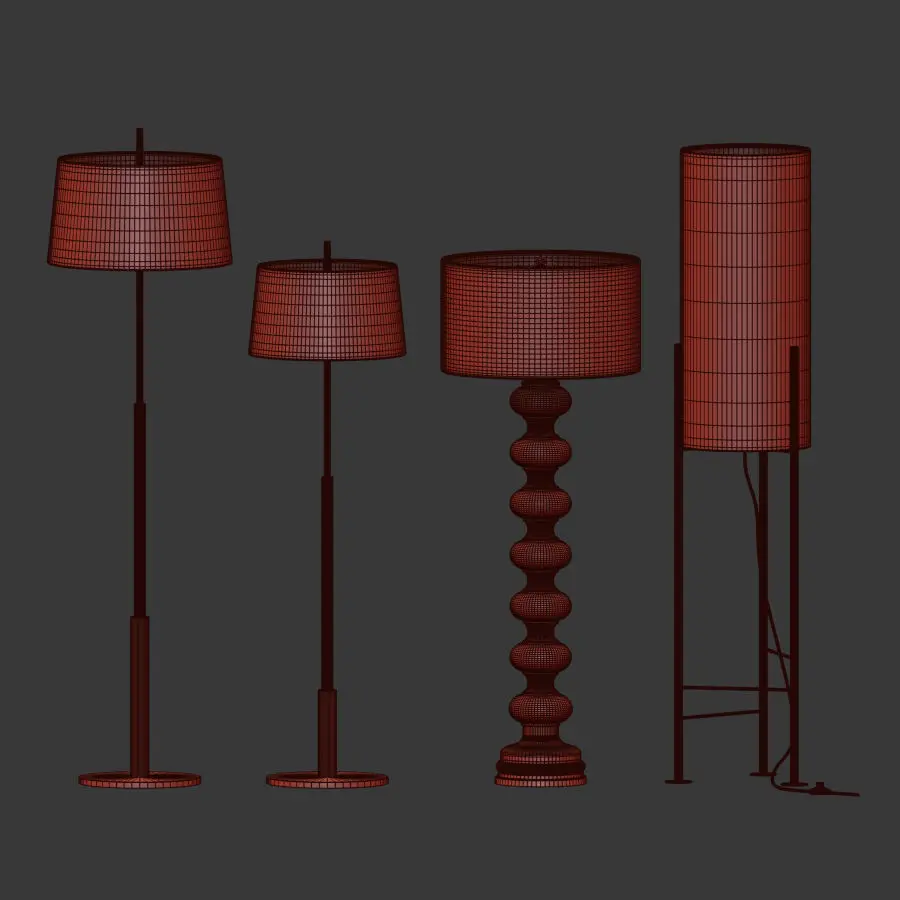 The file contains: - Haus White Floor LampJasmine Glass Floor LampDiana mayor Light ShadeDiana Light Shade Floor LampMaterials: Brass, Gold, Black, milky, opaque, ledArchive Contains: -3d max2012Vray 3.20.02CoronaMap.objThanks