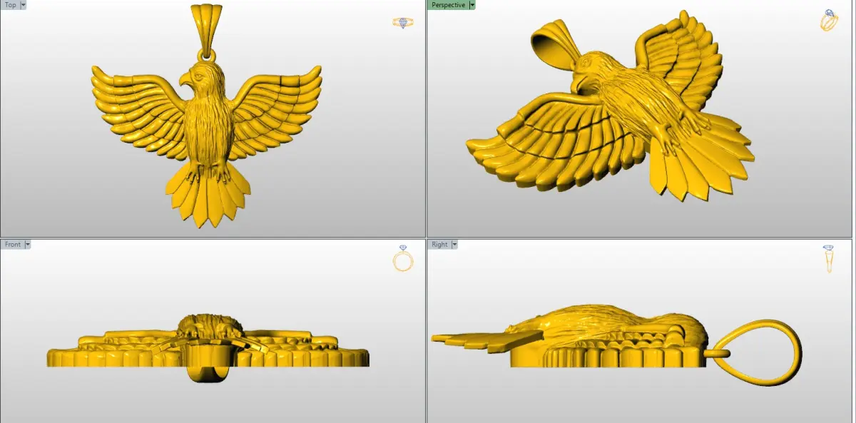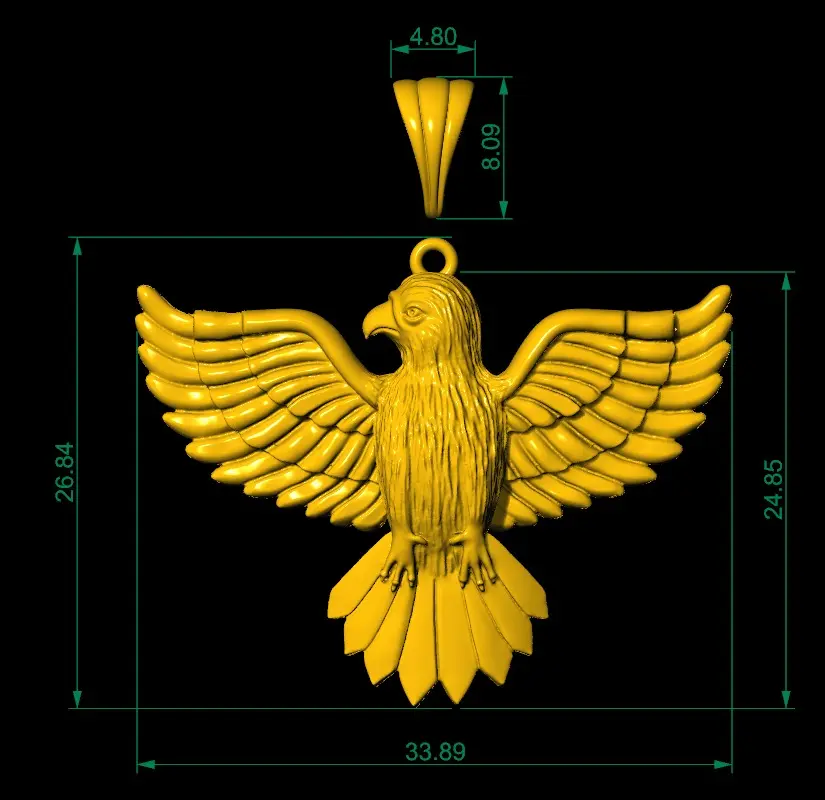 Eagle Pendent volume - 497Gold Weight - 22KT - 7.800gmModel created in Zbrush. It is watertight and ready for printing/milling.