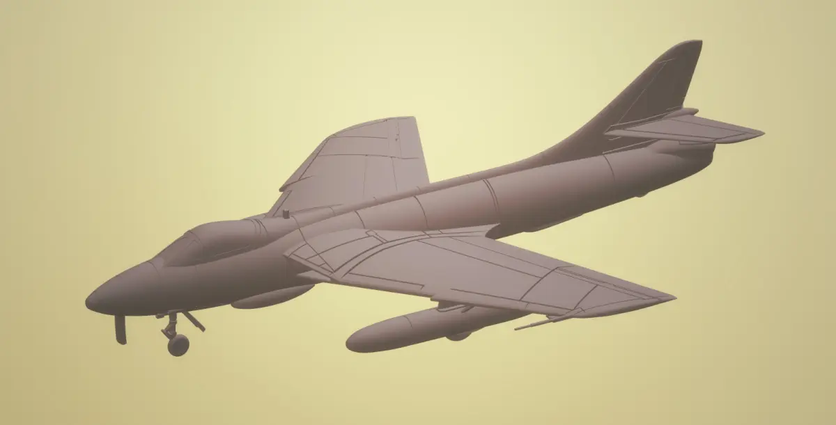 Here, a package of sixteen highly detailed 1/72 scale models of Hawker Hunter FGA.9 is provided. Eight models show the aircraft in clean configuration, another eight show the aircraft with pylons . The models show various states of aircraft components, including landing gear, flaps, air-brake and cockpit canopy. The combinations of these components being extended or retracted is based on general practices, design and operational working of the aircraft (eg. air-brake cannot be extended when landing gear is extended). All models with extended undercarriage have detailed landing gear bays. The parked model includes a detailed cockpit. The landing gear in extended condition is integrated in the model wherever applicable.