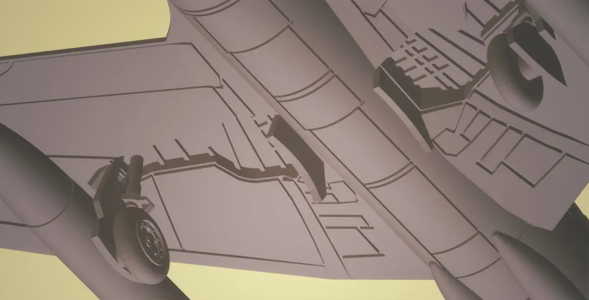 Models of 100-Gallon fuel tank and SNEB rocket launcher are also provided. To be printed separately and glued while matching the slot into the protrusion below pylons.