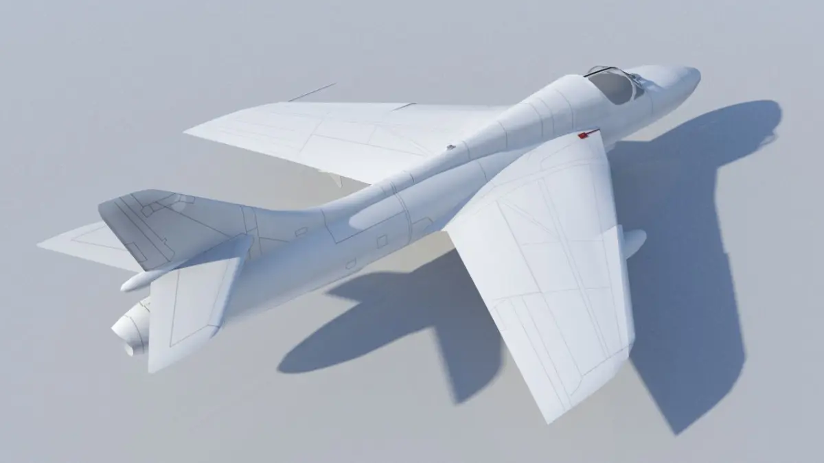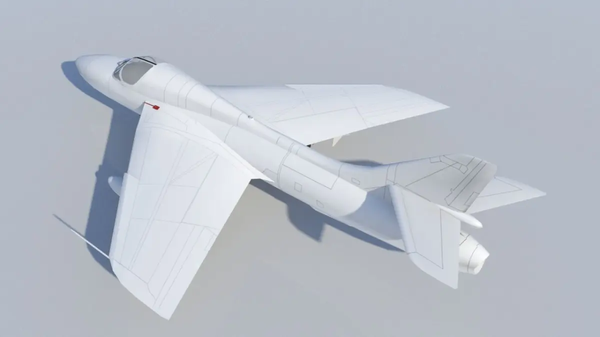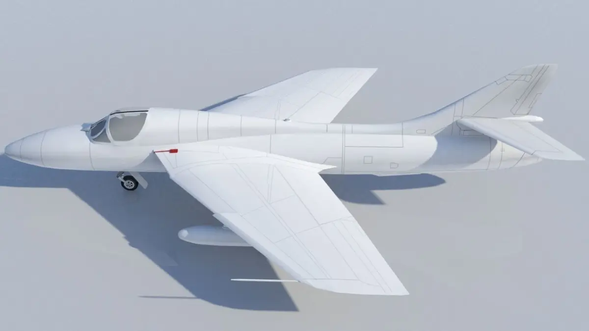 This is a 3D low-poly model of a Folland Hawker Hunter, optimized for minimal complexity with less than 5000 polygons. Despite its low polygon count, the model accurately captures the iconic design and aerodynamic features, making it ideal for real-time rendering in games or simulations.