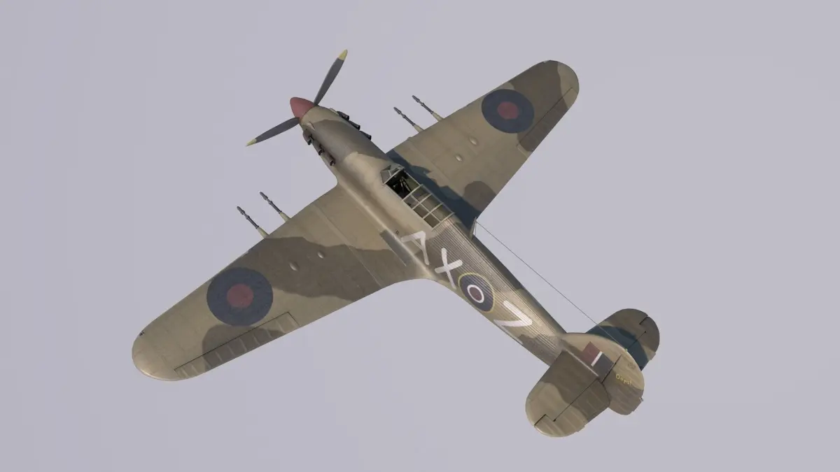 The Hawker Hurricane is a British single-seat fighter aircraft of the 1930s–40s that was designed and predominantly built by Hawker Aircraft Ltd. for service with the Royal Air Force (RAF). It was overshadowed in the public consciousness by the Supermarine Spitfire's role during the Battle of Britain in 1940, but the Hurricane inflicted 60 per cent of the losses sustained by the Luftwaffe in the engagement, and fought in all the major theatres of the Second World War. Detailed 3D model of the Mk.IIB model with separate control surfaces, landing gear, complete interior with clean, quadrant mostly geometry.