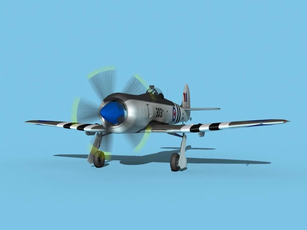 This Royal Canadian Air Force Sea Fury model is built very near to actual scale. The model has an animated propeller and animateable features including landing gear, landing gear doors, rudder, elevators, ailerons, inboard and outboard flaps. It is fully textured and includes a lot of exterior and cockpit control and instrumentation panel detail. It is available in three formats for your immediate downloading and use. It can be used in an animated or static position within an animated video or possibly for programming for a flight simulation application. Max 2014, 3DS, Obj, dxf, dwg formats available.