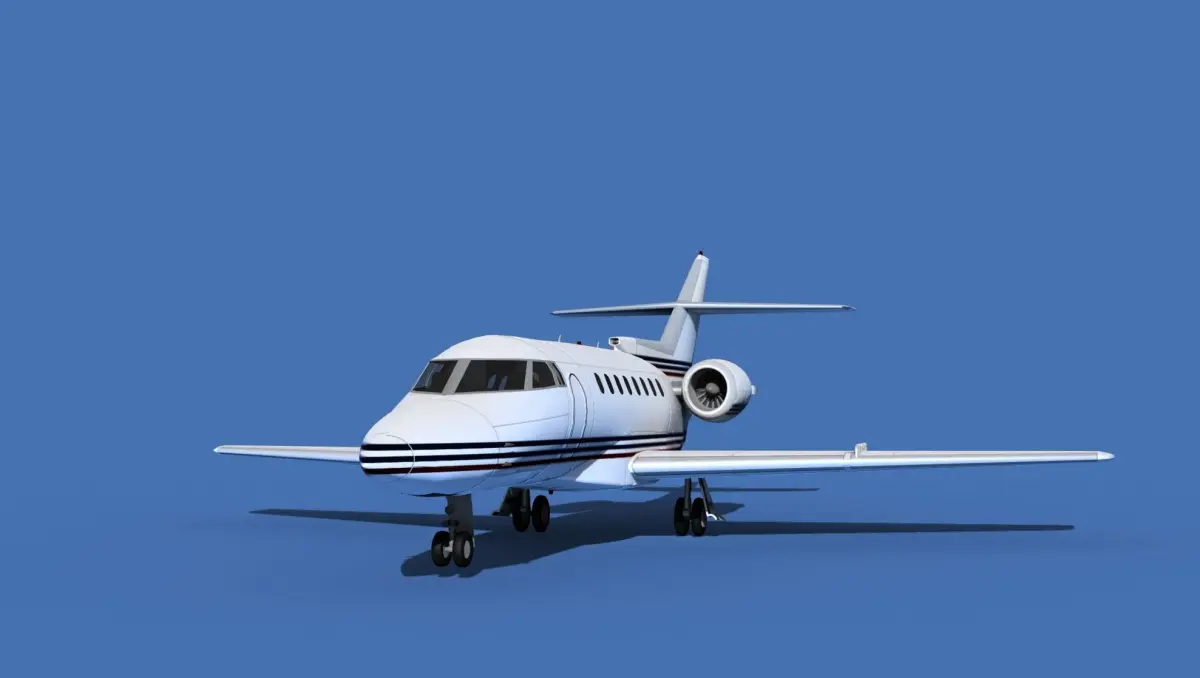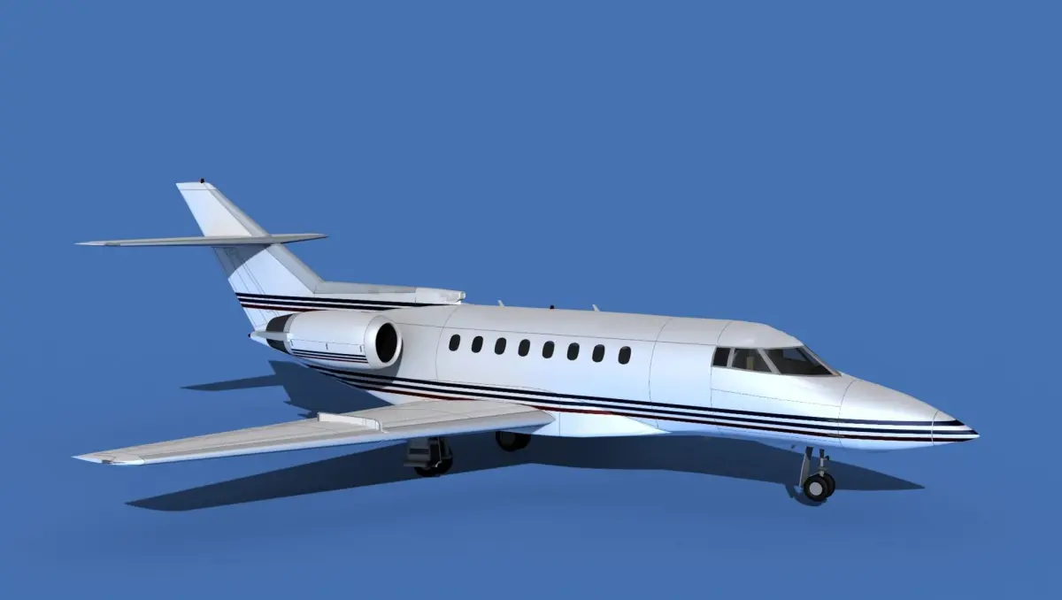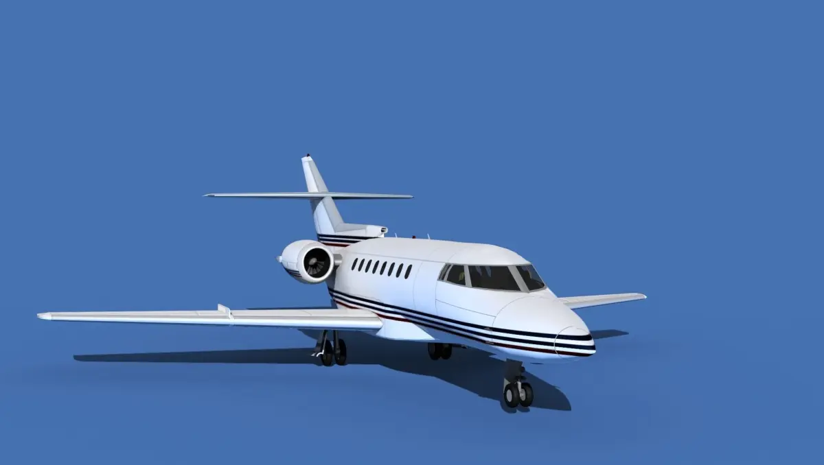 The Hawker 1000 Super Mid Jet was manufactured by Raytheon Aircraft between 1993 and 1998. The cabin measures 24 feet long, 6 feet wide and 5.8 feet height giving it a good size for 8 passengers and 2 crew. The aircraft is powered by two Pratt and Whitney PWA-305B jet engines. It can cruise for 3500 miles at a 540 knot cruise speed. It is a super medium jet transport manufactured by Beechcraft Raytheon.The model was built near to scale in real units and built based on drawings, photos, and other documents. This model has a moderately detailed cockpit and the following animateable features; turbines, retractable landing gear, flaps, ailerons, elevators, rudder, and wheels. These models render very well and look very realistic using good animation, lighting and rendering technique. It can be used in an animated or static position within a scene, animation or animated video, or possibly programming for a flight simulation application. This model was not designed for 3d printing, these are to be used as digital files only. If you purchase one for digital printing we do not guarantee that your print will be successful.Exporting of models is limited but good for several software applications. This model is fully textured with all materials UVW mapped and applied. Most materials are planar mapped and major materials include texturing. All textures and materials are included as shown. Objects are logically named for ease of scene management.No cleaning up necessary, just drop your models into the scene and start rendering.No special plug-ins are needed to open scene.In most cases the liveries are based on actual service liveries or paint schemes. Many of the units, airlines or countries who flew the plane are represented here. Dreamscape Studios is a US 3d modeling firm specializing in building high definition, accurate, and detailed 3D models of commercial, civilian, and military airplanes, ships, buildings and other subjects.Dreamscape 3d models are built in ultra-low to ultra-high polygon count, (most often) near to scale and include a good amount of detail based on the resolution target. If you have a question, error or problem with the model, let us know and we will do our best to provide or get a solution for you. Be advised our models are not designed for 3d printing unless they are advertised for that purpose.