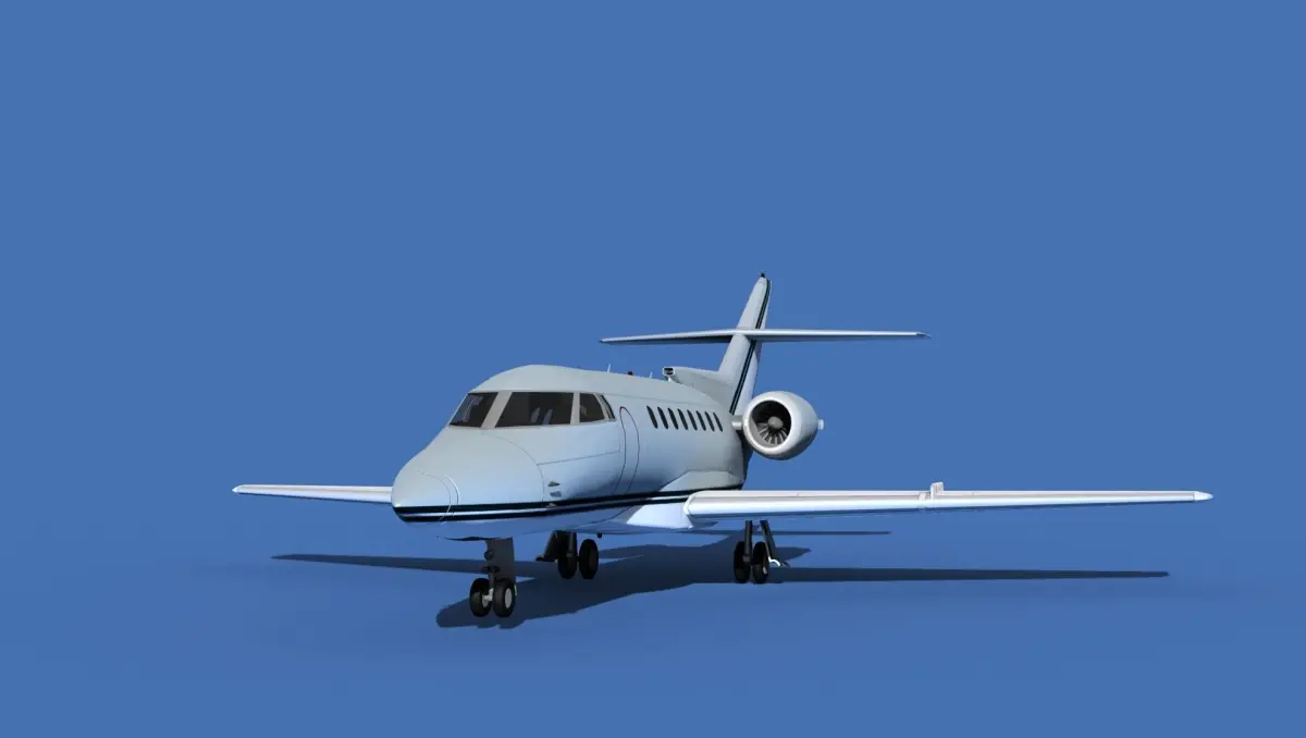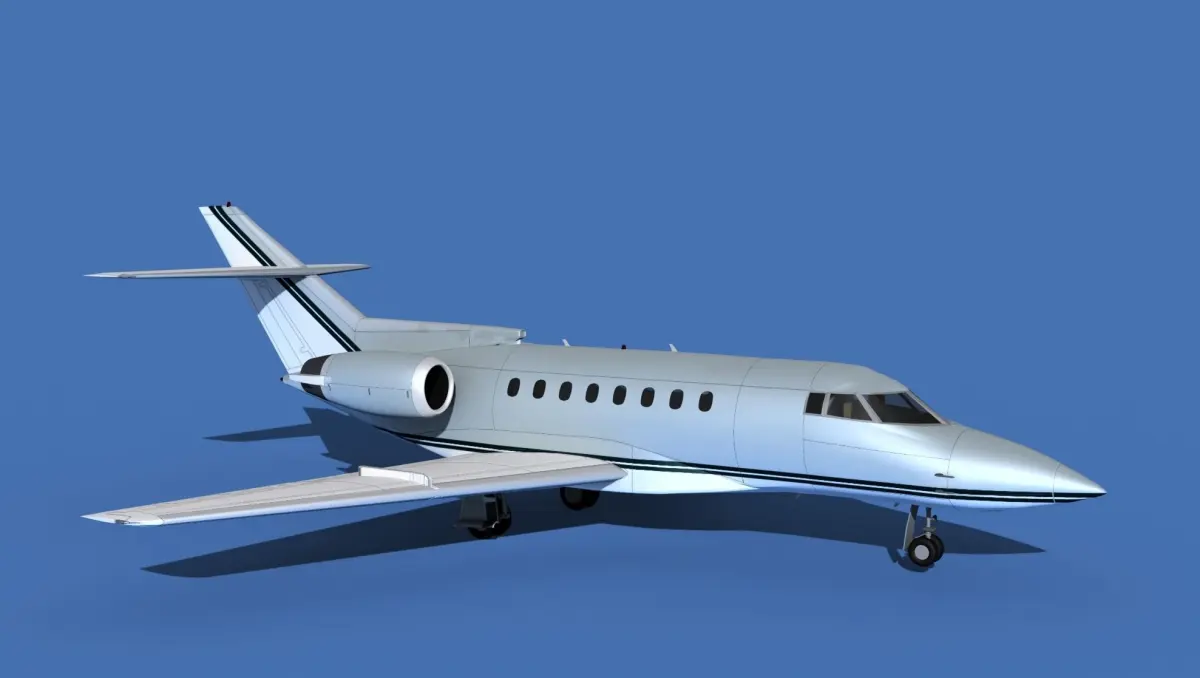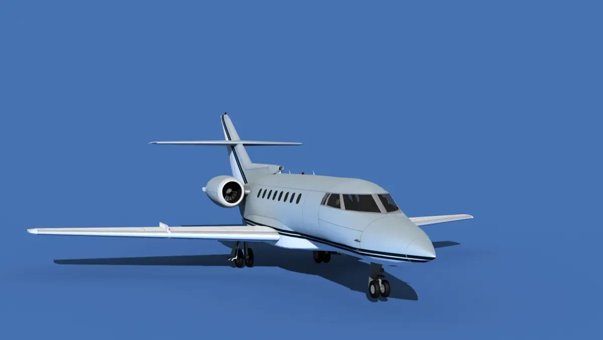 The Hawker 1000 Super Mid Jet was manufactured by Raytheon Aircraft between 1993 and 1998. The cabin measures 24 feet long, 6 feet wide and 5.8 feet height giving it a good size for 8 passengers and 2 crew. The aircraft is powered by two Pratt and Whitney PWA-305B jet engines. It can cruise for 3500 miles at a 540 knot cruise speed. It is a super medium jet transport manufactured by Beechcraft Raytheon.The model was built near to scale in real units and built based on drawings, photos, and other documents. This model has a moderately detailed cockpit and the following animateable features; turbines, retractable landing gear, flaps, ailerons, elevators, rudder, and wheels. These models render very well and look very realistic using good animation, lighting and rendering technique. It can be used in an animated or static position within a scene, animation or animated video, or possibly programming for a flight simulation application. This model was not designed for 3d printing, these are to be used as digital files only. If you purchase one for digital printing we do not guarantee that your print will be successful.Exporting of models is limited but good for several software applications. This model is fully textured with all materials UVW mapped and applied. Most materials are planar mapped and major materials include texturing. All textures and materials are included as shown. Objects are logically named for ease of scene management.No cleaning up necessary, just drop your models into the scene and start rendering.No special plug-ins are needed to open scene.In most cases the liveries are based on actual service liveries or paint schemes. Many of the units, airlines or countries who flew the plane are represented here. Dreamscape Studios is a US 3d modeling firm specializing in building high definition, accurate, and detailed 3D models of commercial, civilian, and military airplanes, ships, buildings and other subjects.Dreamscape 3d models are built in ultra-low to ultra-high polygon count, (most often) near to scale and include a good amount of detail based on the resolution target. If you have a question, error or problem with the model, let us know and we will do our best to provide or get a solution for you. Be advised our models are not designed for 3d printing unless they are advertised for that purpose.