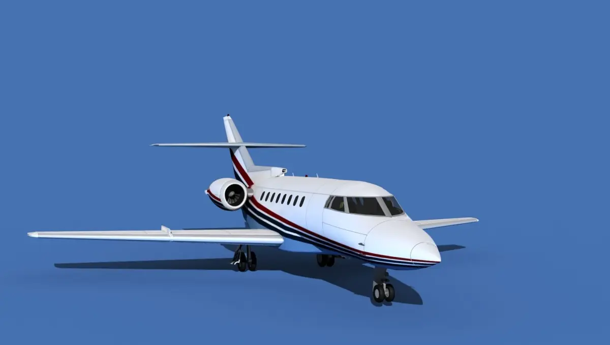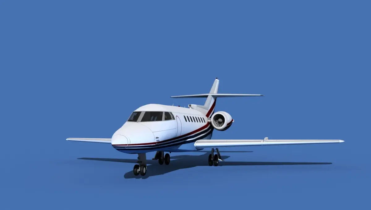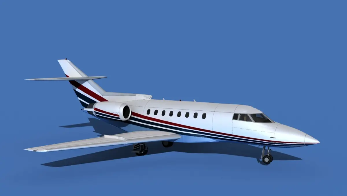 The Hawker 1000 Super Mid Jet was manufactured by Raytheon Aircraft between 1993 and 1998. The cabin measures 24 feet long, 6 feet wide and 5.8 feet height giving it a good size for 8 passengers and 2 crew. The aircraft is powered by two Pratt and Whitney PWA-305B jet engines. It can cruise for 3500 miles at a 540 knot cruise speed. It is a super medium jet transport manufactured by Beechcraft Raytheon.The model was built near to scale in real units and built based on drawings, photos, and other documents. This model has a moderately detailed cockpit and the following animateable features; turbines, retractable landing gear, flaps, ailerons, elevators, rudder, and wheels. These models render very well and look very realistic using good animation, lighting and rendering technique. It can be used in an animated or static position within a scene, animation or animated video, or possibly programming for a flight simulation application. This model was not designed for 3d printing, these are to be used as digital files only. If you purchase one for digital printing we do not guarantee that your print will be successful.Exporting of models is limited but good for several software applications. This model is fully textured with all materials UVW mapped and applied. Most materials are planar mapped and major materials include texturing. All textures and materials are included as shown. Objects are logically named for ease of scene management.No cleaning up necessary, just drop your models into the scene and start rendering.No special plug-ins are needed to open scene.In most cases the liveries are based on actual service liveries or paint schemes. Many of the units, airlines or countries who flew the plane are represented here. Dreamscape Studios is a US 3d modeling firm specializing in building high definition, accurate, and detailed 3D models of commercial, civilian, and military airplanes, ships, buildings and other subjects.Dreamscape 3d models are built in ultra-low to ultra-high polygon count, (most often) near to scale and include a good amount of detail based on the resolution target. If you have a question, error or problem with the model, let us know and we will do our best to provide or get a solution for you. Be advised our models are not designed for 3d printing unless they are advertised for that purpose.