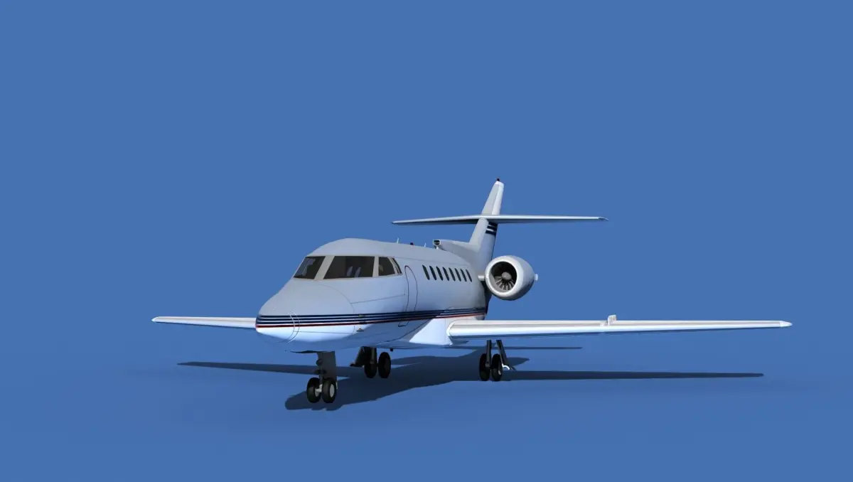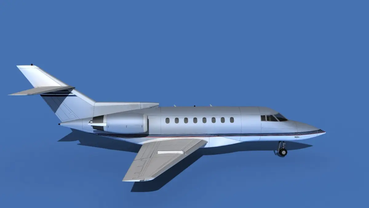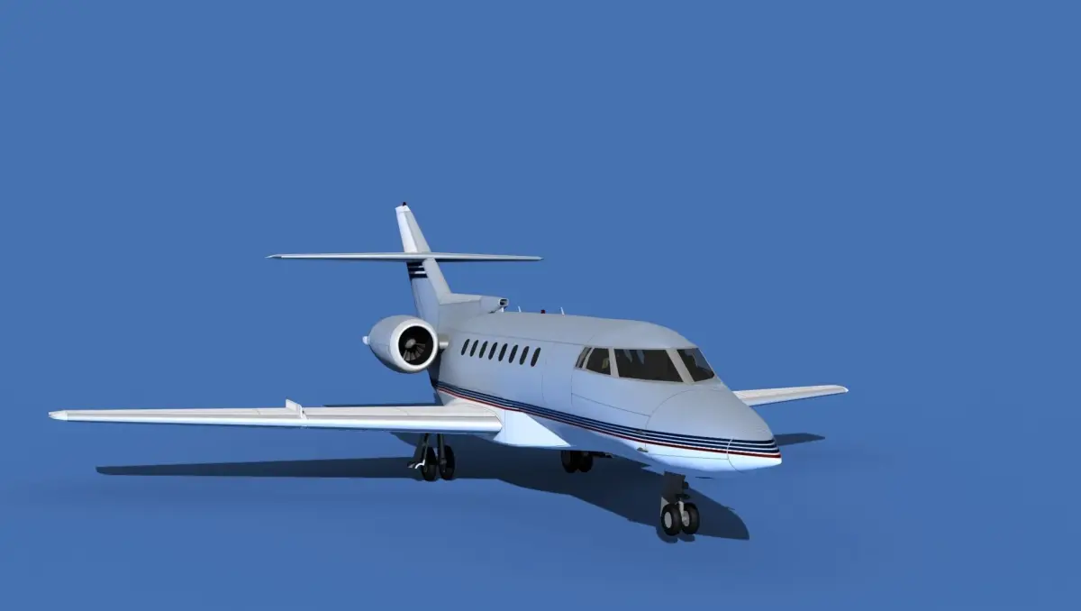 The Hawker 1000 Super Mid Jet was manufactured by Raytheon Aircraft between 1993 and 1998. The cabin measures 24 feet long, 6 feet wide and 5.8 feet height giving it a good size for 8 passengers and 2 crew. The aircraft is powered by two Pratt and Whitney PWA-305B jet engines. It can cruise for 3500 miles at a 540 knot cruise speed. It is a super medium jet transport manufactured by Beechcraft Raytheon.The model was built near to scale in real units and built based on drawings, photos, and other documents. This model has a moderately detailed cockpit and the following animateable features; turbines, retractable landing gear, flaps, ailerons, elevators, rudder, and wheels. These models render very well and look very realistic using good animation, lighting and rendering technique. It can be used in an animated or static position within a scene, animation or animated video, or possibly programming for a flight simulation application. This model was not designed for 3d printing, these are to be used as digital files only. If you purchase one for digital printing we do not guarantee that your print will be successful.Exporting of models is limited but good for several software applications. This model is fully textured with all materials UVW mapped and applied. Most materials are planar mapped and major materials include texturing. All textures and materials are included as shown. Objects are logically named for ease of scene management.No cleaning up necessary, just drop your models into the scene and start rendering.No special plug-ins are needed to open scene.In most cases the liveries are based on actual service liveries or paint schemes. Many of the units, airlines or countries who flew the plane are represented here. Dreamscape Studios is a US 3d modeling firm specializing in building high definition, accurate, and detailed 3D models of commercial, civilian, and military airplanes, ships, buildings and other subjects.Dreamscape 3d models are built in ultra-low to ultra-high polygon count, (most often) near to scale and include a good amount of detail based on the resolution target. If you have a question, error or problem with the model, let us know and we will do our best to provide or get a solution for you. Be advised our models are not designed for 3d printing unless they are advertised for that purpose.
