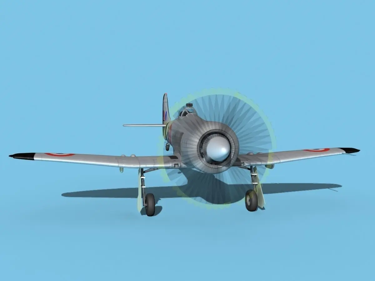 This model is built very near to actual scale. It has an animated propeller and animateable features including landing gear, landing gear doors, rudder, elevators, ailerons, inboard and outboard flaps. It is fully textured and includes a lot of exterior and cockpit control and instrument panel detail. Model is available in a few formats - Max 2014, 3DS, Obj, dwg, dxf . It can be used in an animated or static position within an animated video or possibly for programming for a flight simulation application. This model was not designed for 3d printing, these are digital files only.The Hawker Tempest Mk 11 is a British designed and built fighter airplane manufactured by the Hawker Aircraft Company at the end of World War II. It was the last piston-engine aircraft used by the Royal Air Force before the jet age made them obsolete. They continued in service as a ground attack aircraft through the UN Operations in the Korean Conflict. They have been used in unlimited class racing after the Korean War. They are also a prized possession for a very wealthy collectors, museum or a racing enthusiasts.