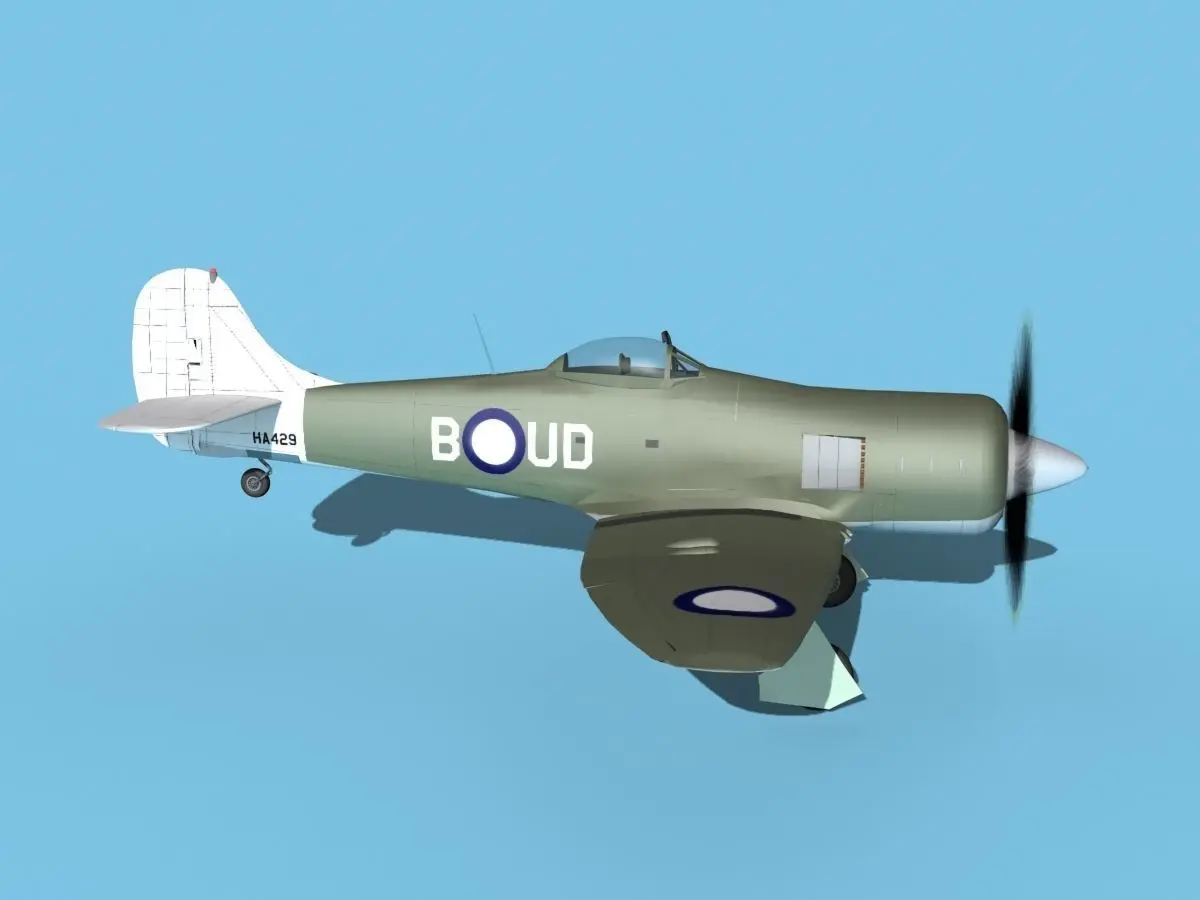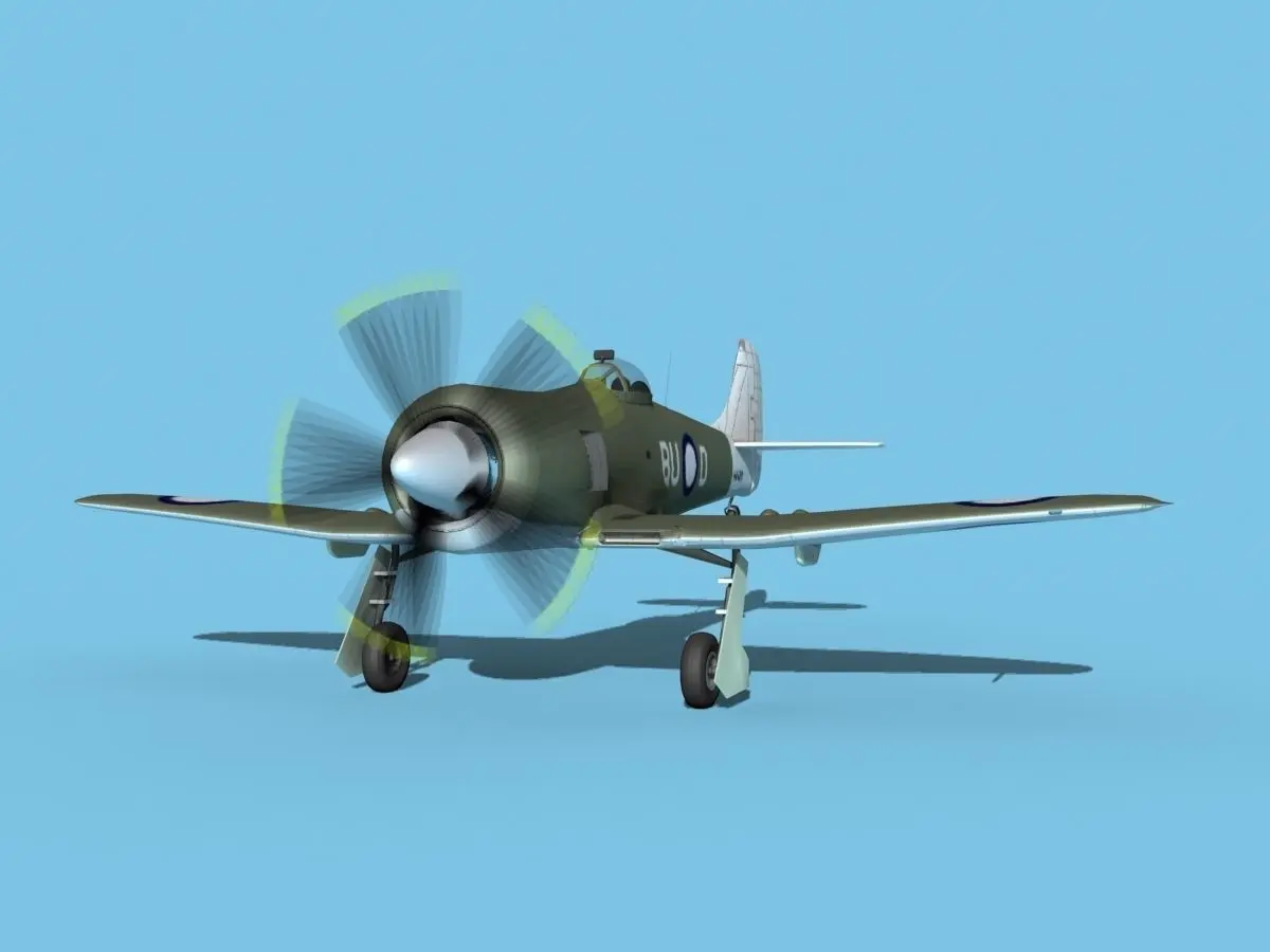 This model is built very near to actual scale. It has an animated propeller and animateable features including landing gear, landing gear doors, rudder, elevators, ailerons, inboard and outboard flaps. It is fully textured and includes a lot of exterior and cockpit control and instrument panel detail. Model is available in a few formats - Max 2014, 3DS, Obj, dwg, dxf . It can be used in an animated or static position within an animated video or possibly for programming for a flight simulation application. This model was not designed for 3d printing, these are digital files only.The Hawker Tempest Mk 11 is a British designed and built fighter airplane manufactured by the Hawker Aircraft Company at the end of World War II. It was the last piston-engine aircraft used by the Royal Air Force before the jet age made them obsolete. They continued in service as a ground attack aircraft through the UN Operations in the Korean Conflict. They have been used in unlimited class racing after the Korean War. They are also a prized possession for a very wealthy collectors, museum or a racing enthusiasts.