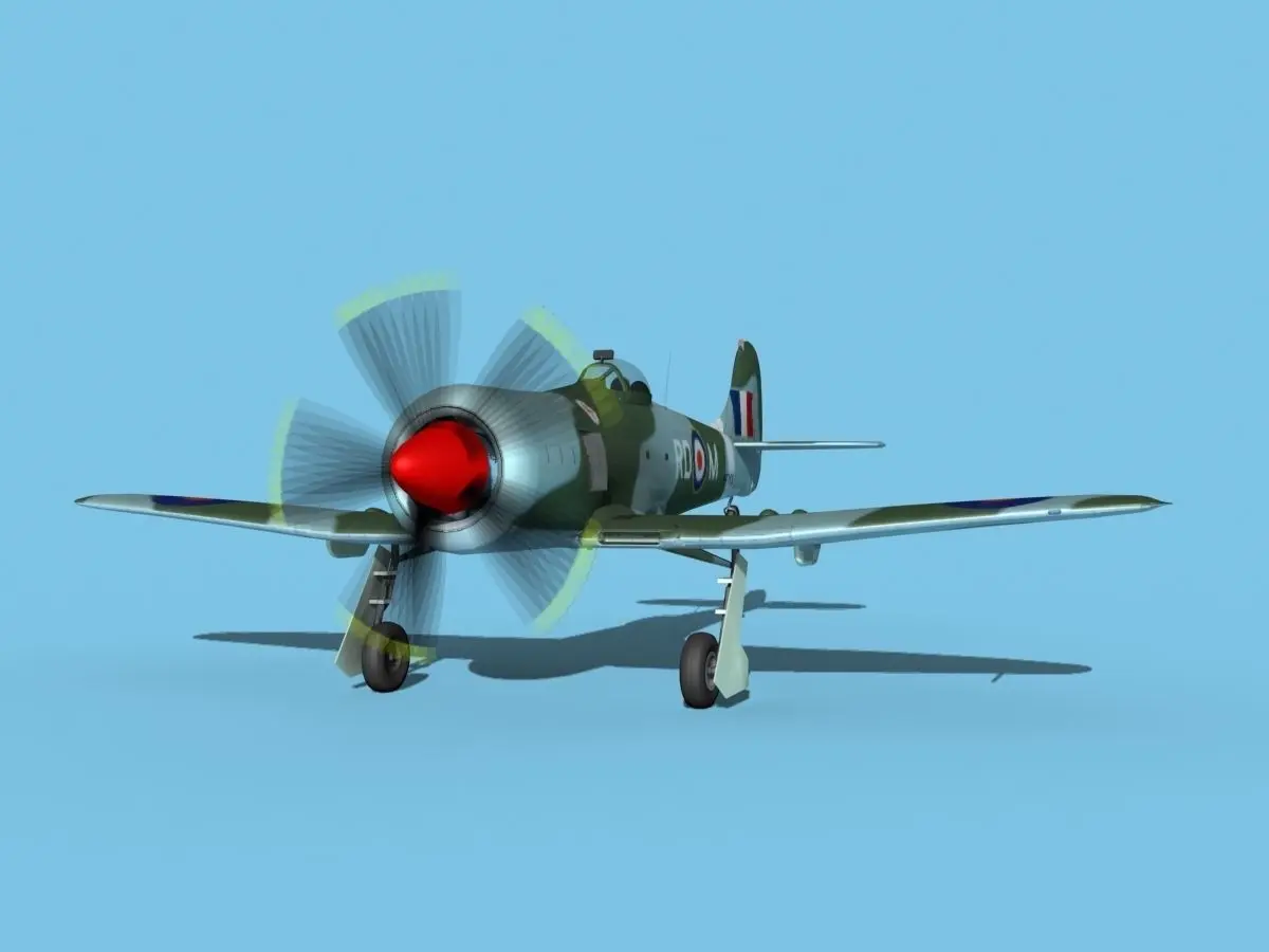 This model is built very near to actual scale. It has an animated propeller and animateable features including landing gear, landing gear doors, rudder, elevators, ailerons, inboard and outboard flaps. It is fully textured and includes a lot of exterior and cockpit control and instrument panel detail. Model is available in a few formats - Max 2014, 3DS, Obj, dwg, dxf . It can be used in an animated or static position within an animated video or possibly for programming for a flight simulation application. This model was not designed for 3d printing, these are digital files only.The Hawker Tempest Mk 11 is a British designed and built fighter airplane manufactured by the Hawker Aircraft Company at the end of World War II. It was the last piston-engine aircraft used by the Royal Air Force before the jet age made them obsolete. They continued in service as a ground attack aircraft through the UN Operations in the Korean Conflict. They have been used in unlimited class racing after the Korean War. They are also a prized possession for a very wealthy collectors, museum or a racing enthusiasts.