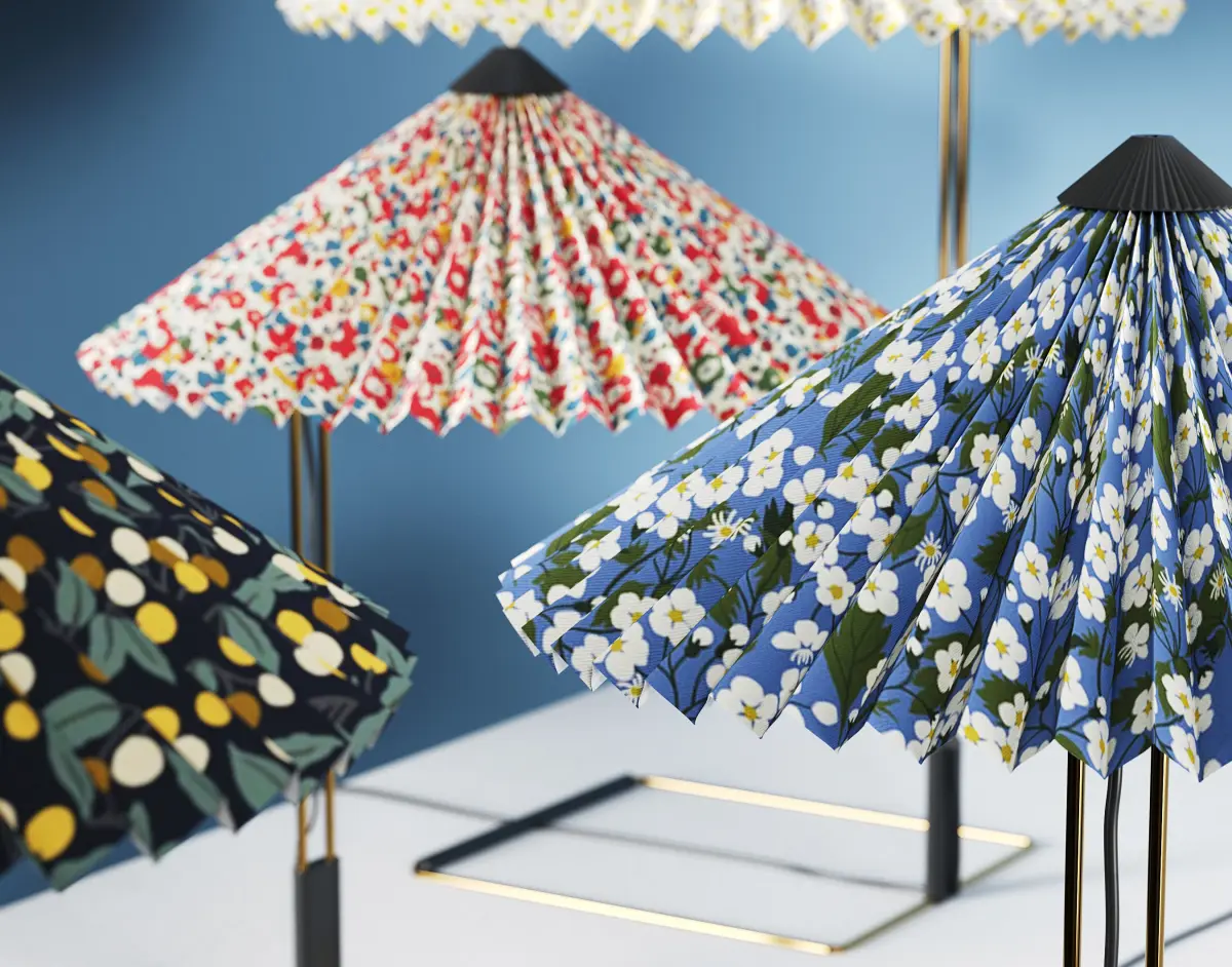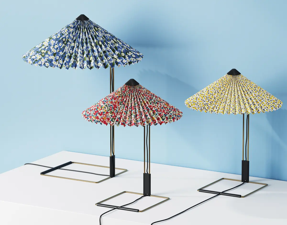 MATIN is a family of contemporary table, ceiling, and wall lamps by HAY Design and designer Inga Sempé. It features 5 classic fabric patterns by Liberty of London selected by Mette Hay. Lamps are available in three sizes and are suitable for both private and office environments. It is a progressive and technologically advanced lighting collection.