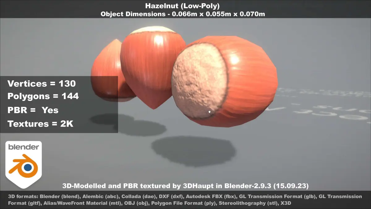 Here is a low-poly modelled hazelnut with 2k PBR texture-set.