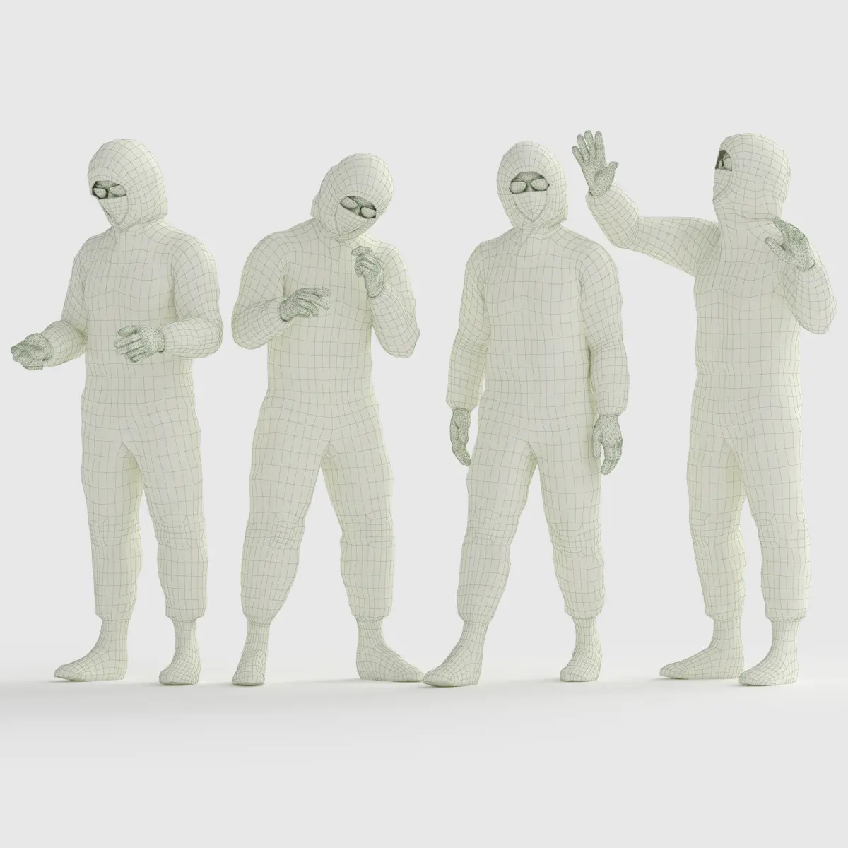 Texturing & Materials:The model boasts stunning, photorealistic PBR (Physically Based Rendering) textures created in Substance 3D Painter. Materials accurately represent the specialized synthetic fabrics, rubber seals, clear visor plastic, and any metallic or plastic hardware associated with a hazmat suit. These high-resolution textures ensure the suit looks airtight, durable, and responds realistically to diverse lighting environments.