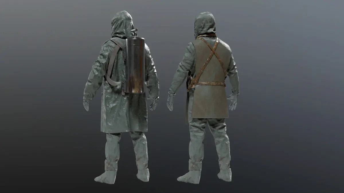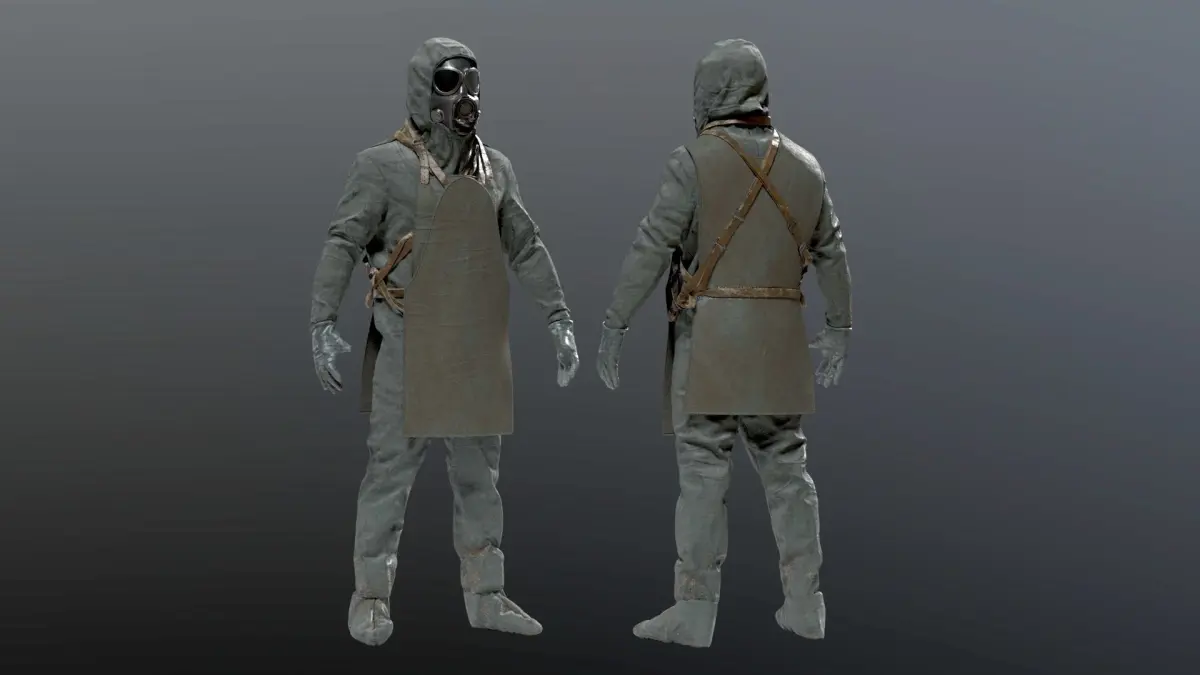 NBC SUIT + OVERALL COAT + GAS MASK3D Hazmat nuclear , bacteriological , chemical hazard NBC Chernbobyl Liquidator, backroom suit modeled in high precision.this is a mix between several references i found. this model has been accurately recreated in 3d High poly to keep every details.