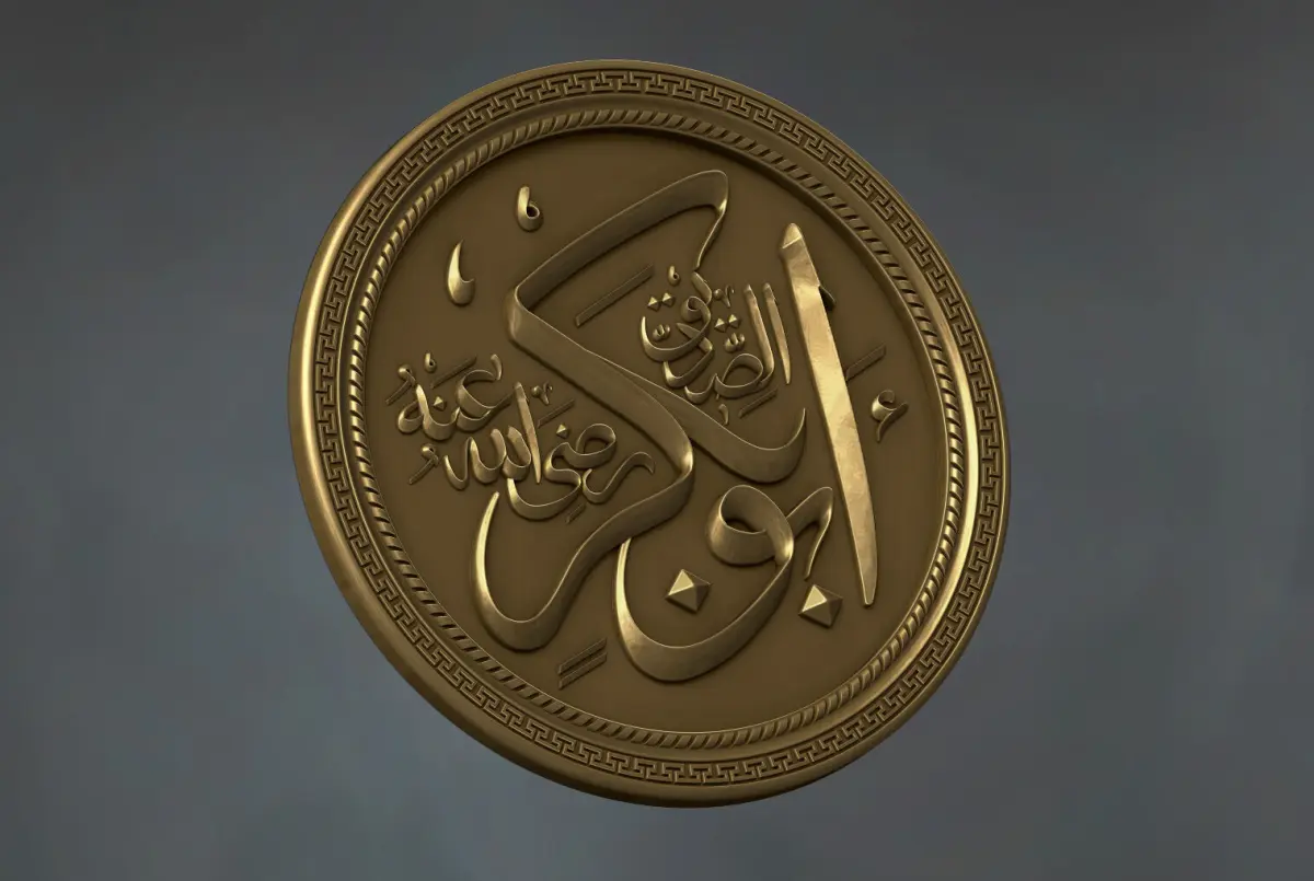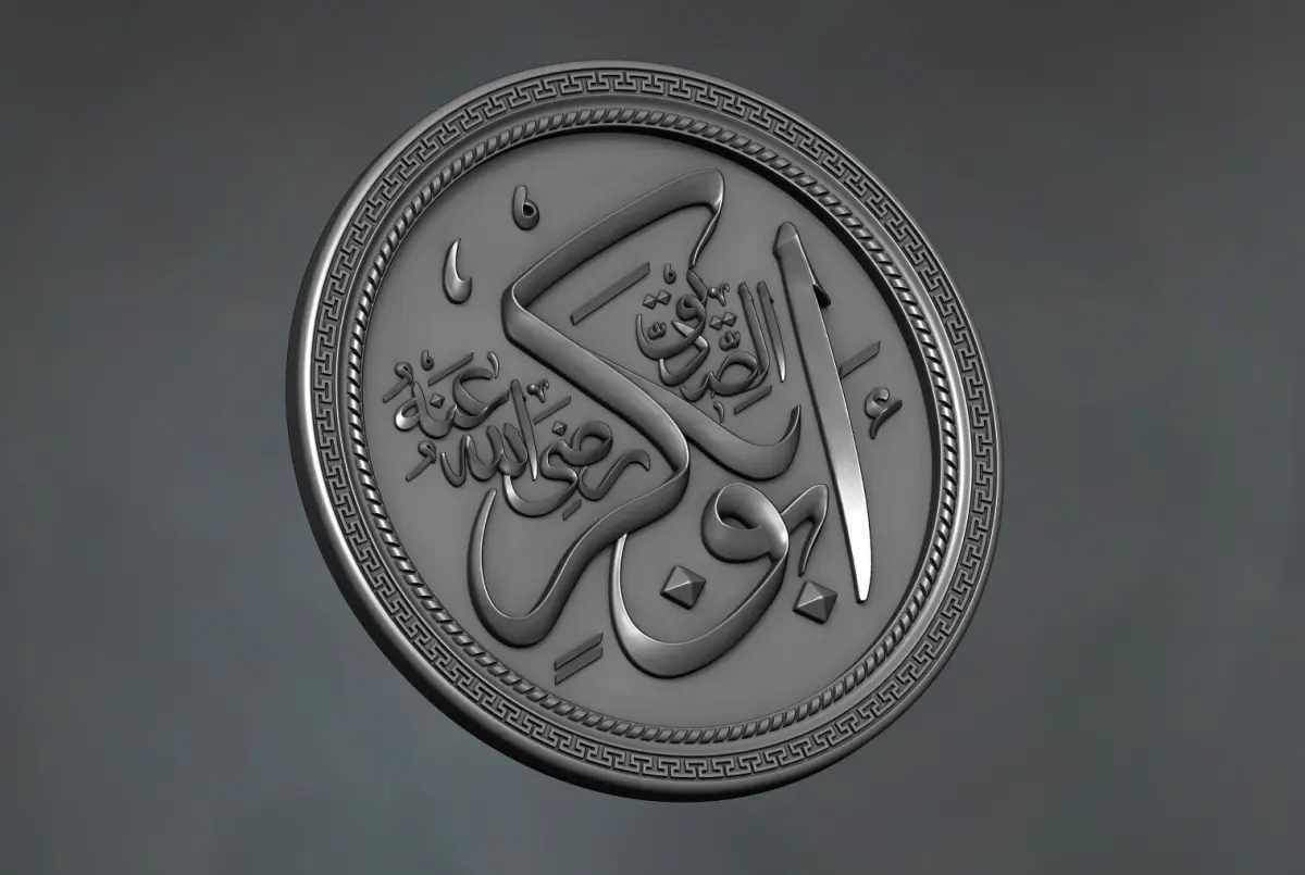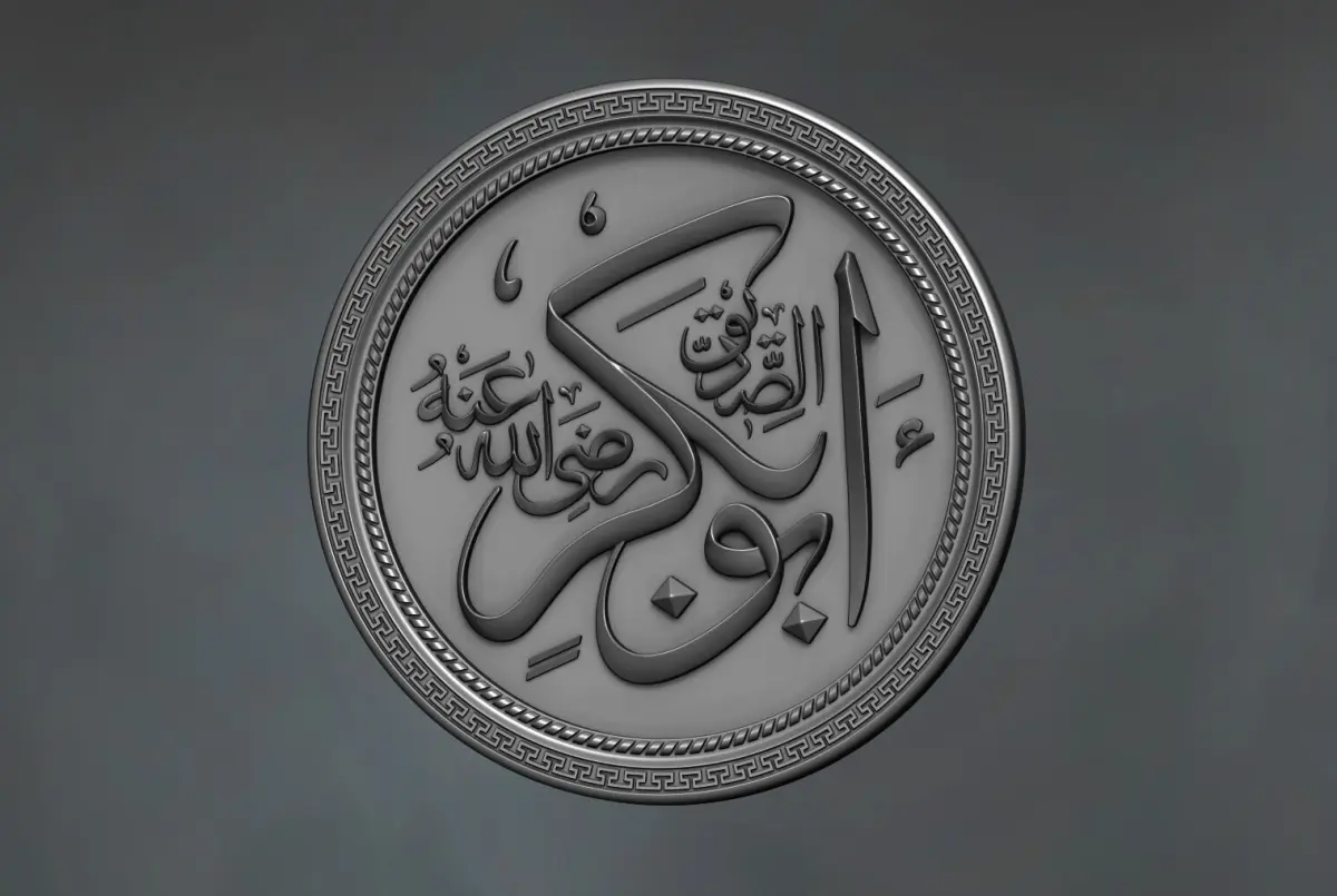 This 3D model showcases the intricate and elegant calligraphy of Hazrat Abu Bakr (RA), one of the most revered figures in Islamic history. The design is meticulously carved, capturing the essence of traditional Arabic calligraphy in a way that can be seamlessly transferred to a 3D-printed format. The name Hazrat Abu Bakr is beautifully crafted using classic Islamic script, characterized by its flowing curves and balanced proportions, which are typical of the Naskh or Thuluth calligraphic styles.