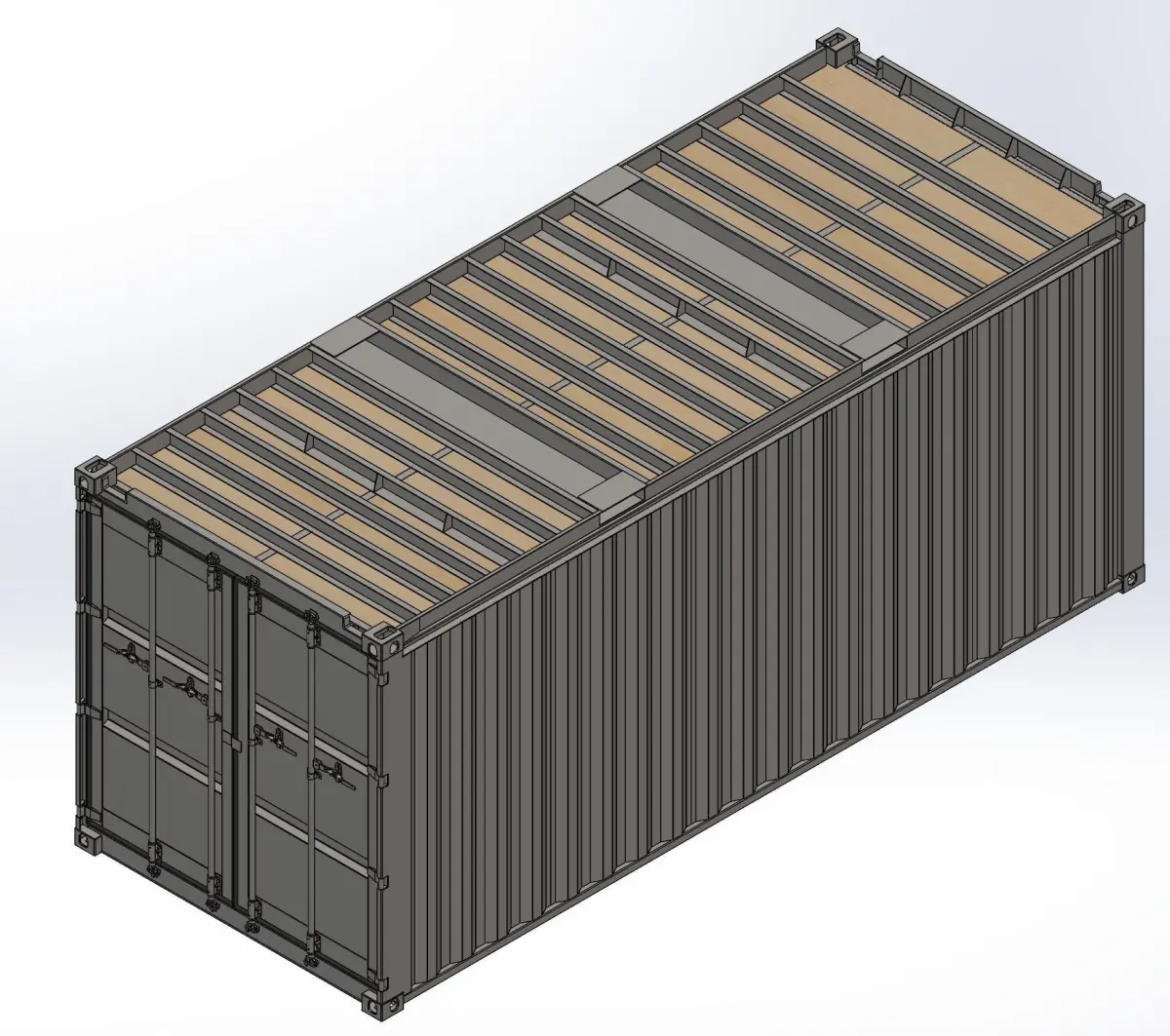 Based on a technical specification, a 20ft container was converted into a 3D model. This has the following dimensions: Length: 6058 Height: 2896Width: 2438 Weight: 2.079 tons File format: IGES Gesamtanzahl Komponenten: 455 Without logos