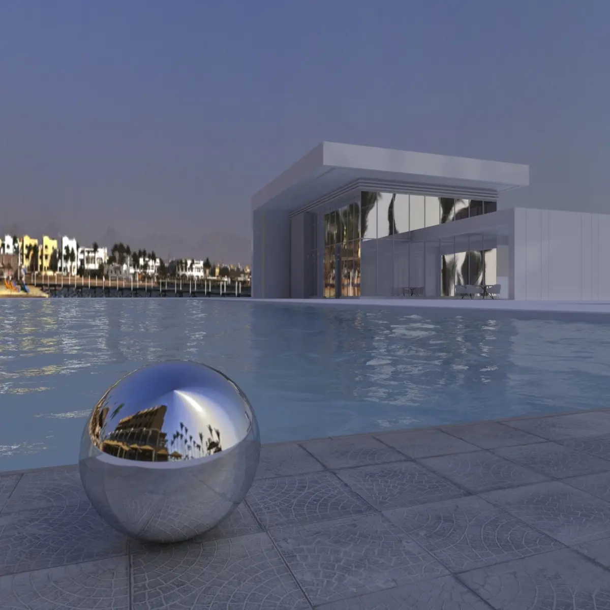 Type: Spherical HDRI MapTime: DayFilmed in 3 expositions in EgyptArchived: HDRI 32-bit JPG 8-bit (for background)The model of a house with a pool in a preview demonstrates the lighting effect from an HDRI panorama. The model of the house is not in the archive.