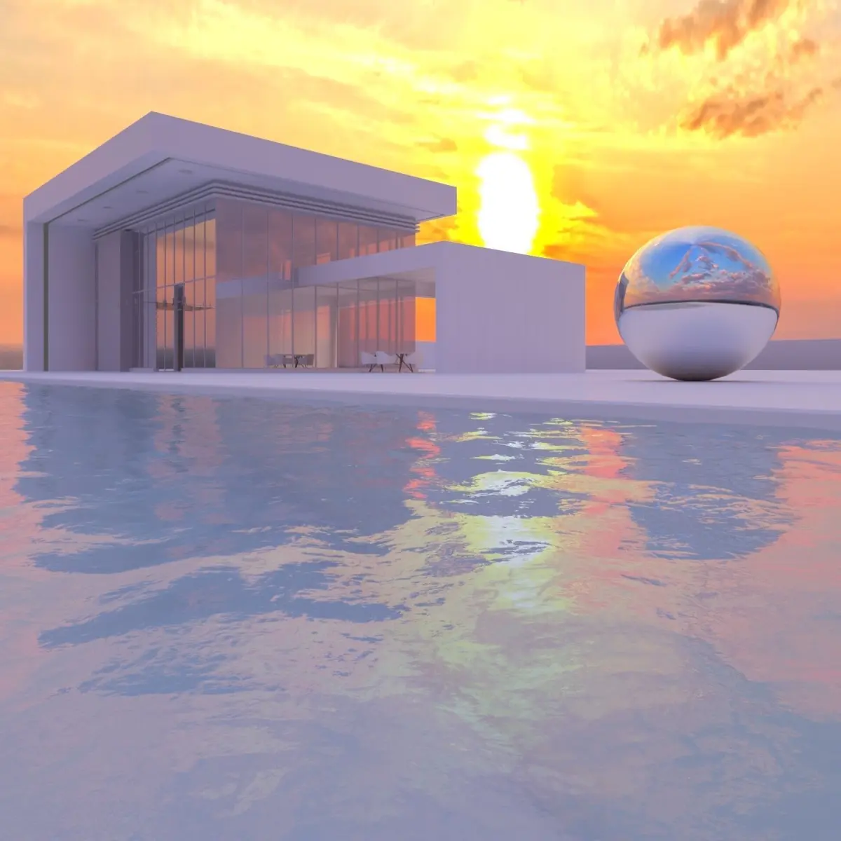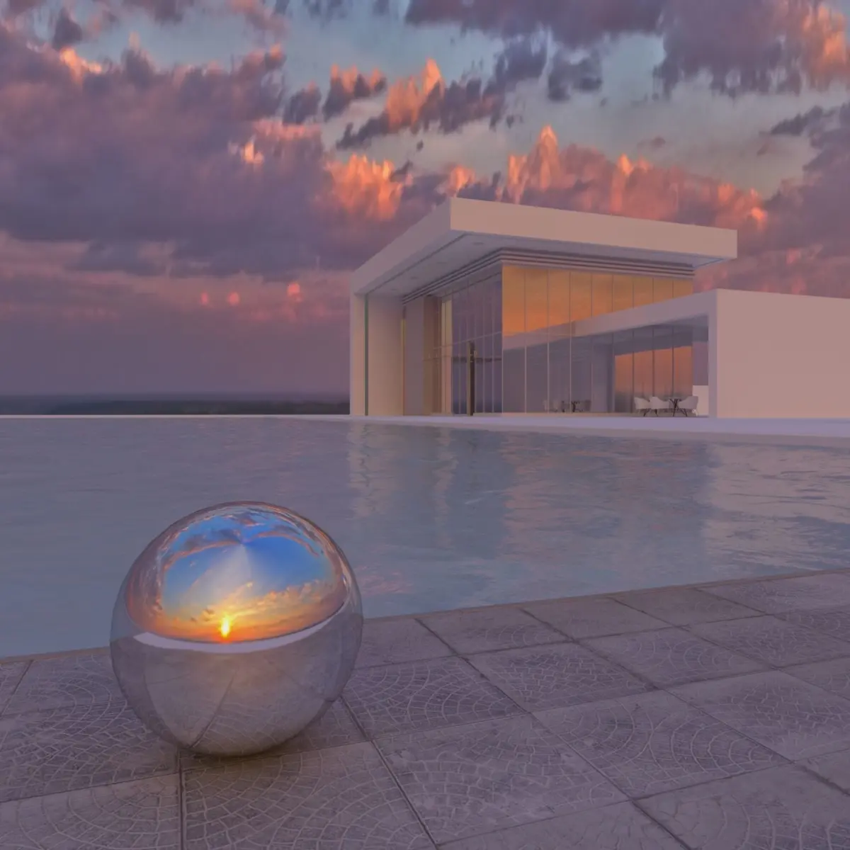 Type: Spherical HDRI MapTime: SunsetFilmed in 5 expositionsArchived: HDRI 32-bit JPG 8-bit (for background)Filmed from a quadcopter.A feature of high-altitude panoramas is a flat horizon with a good aerial perspective. The model of a house with a pool in a preview demonstrates the lighting effect from an HDRI panorama.The model of the house is not in the archive.